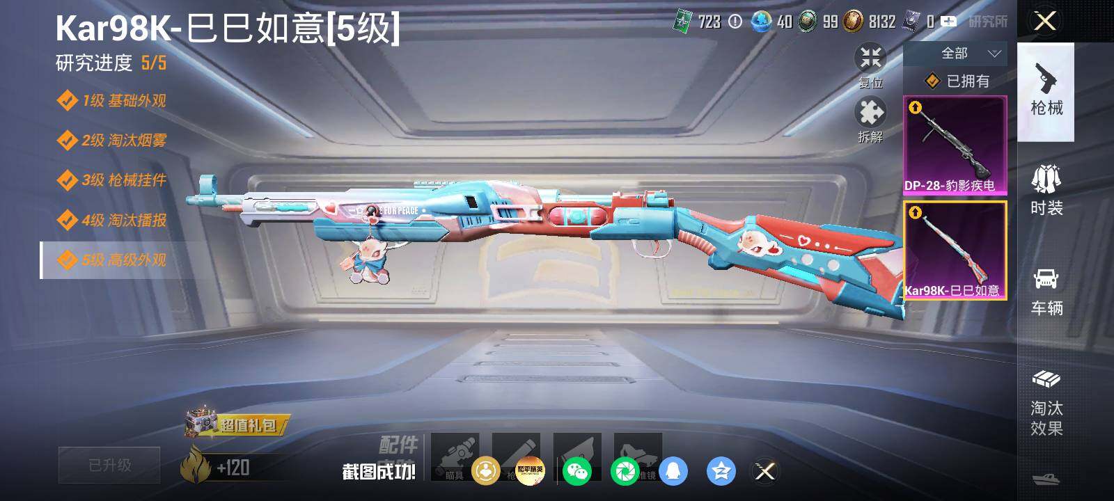 【粉色枪皮等级】:Kar98K-巳巳如意(五级),DP-28-豹影疾电(二级)