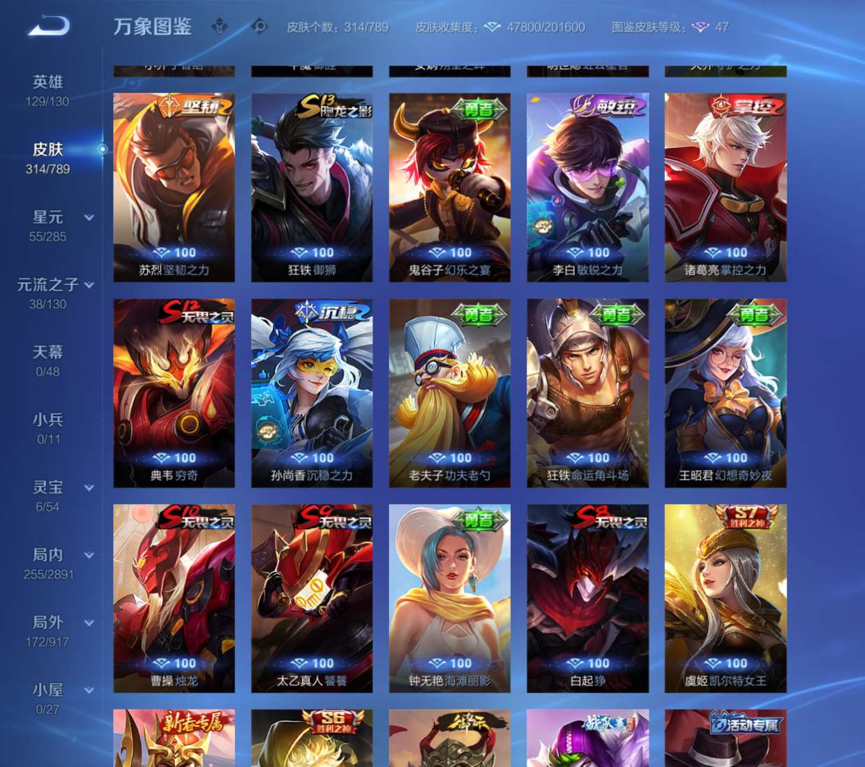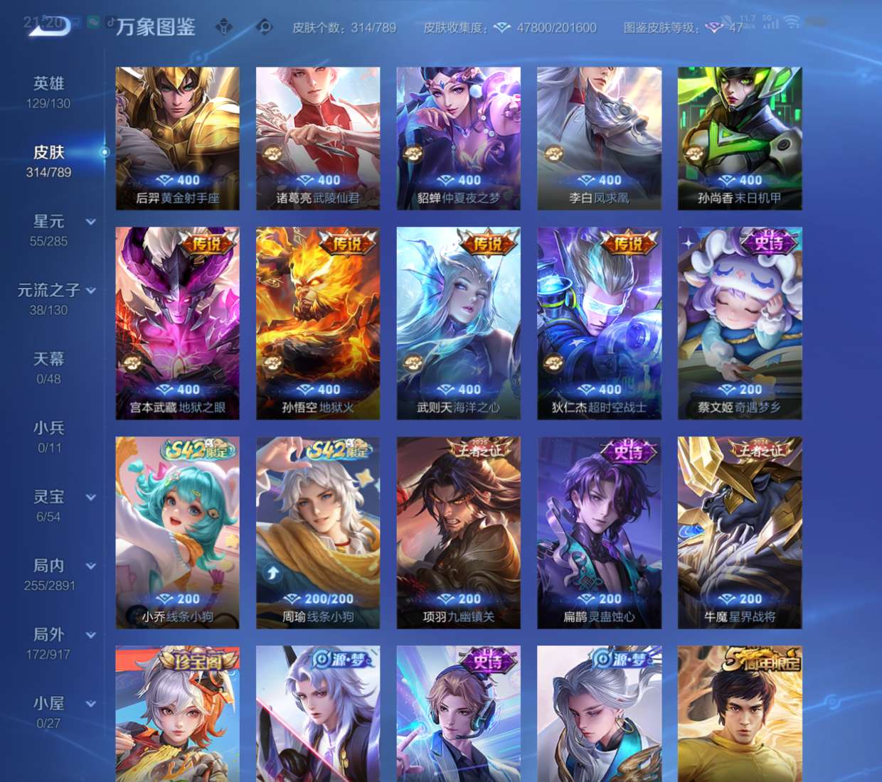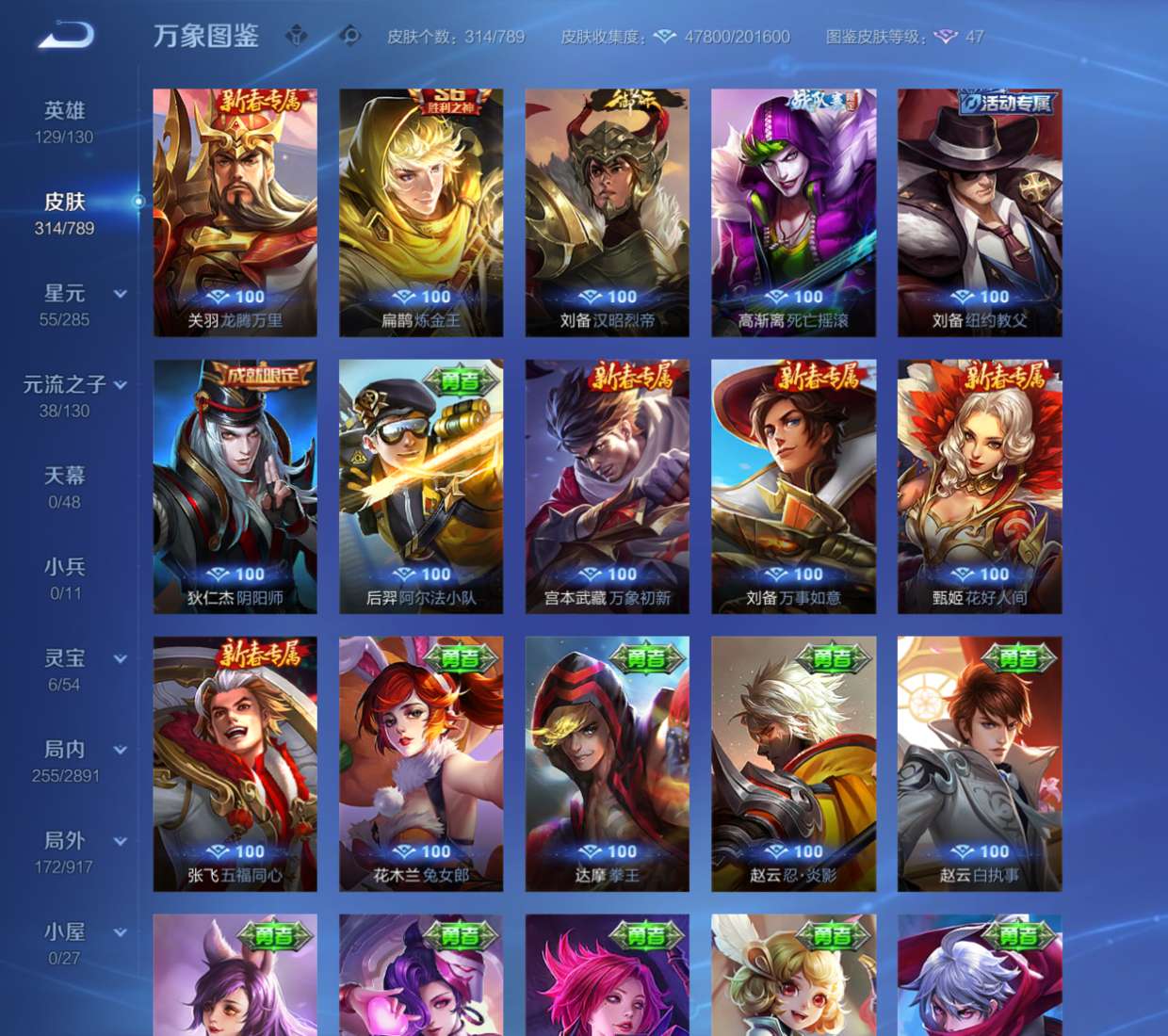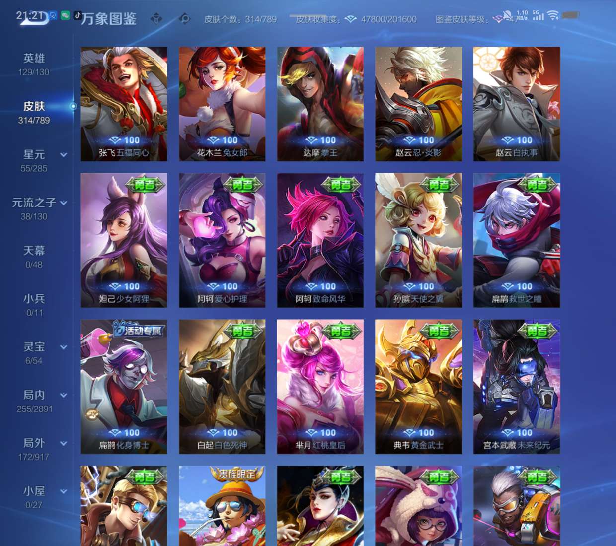 V10账号绝版皮肤自己充了1万多4个荣耀典藏
