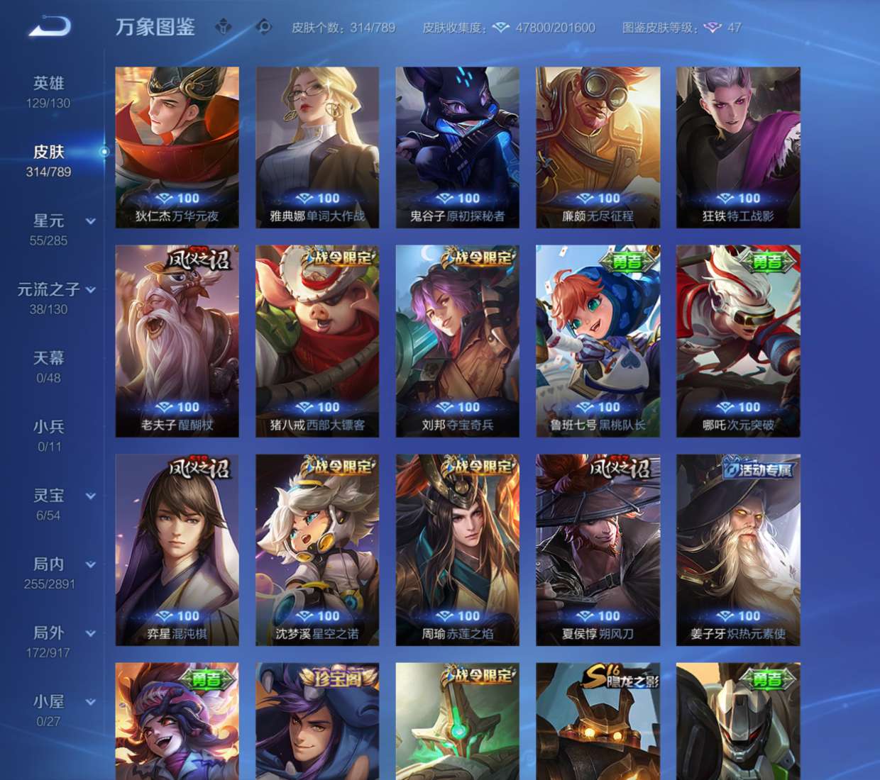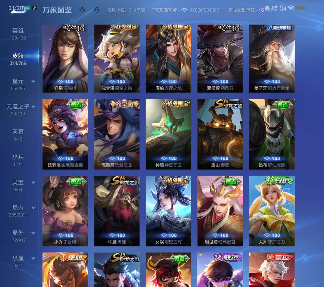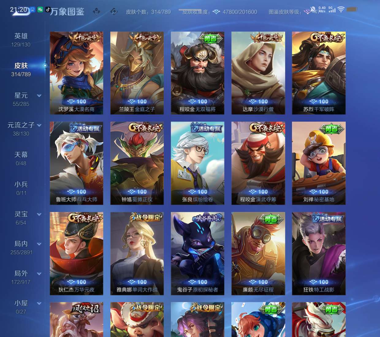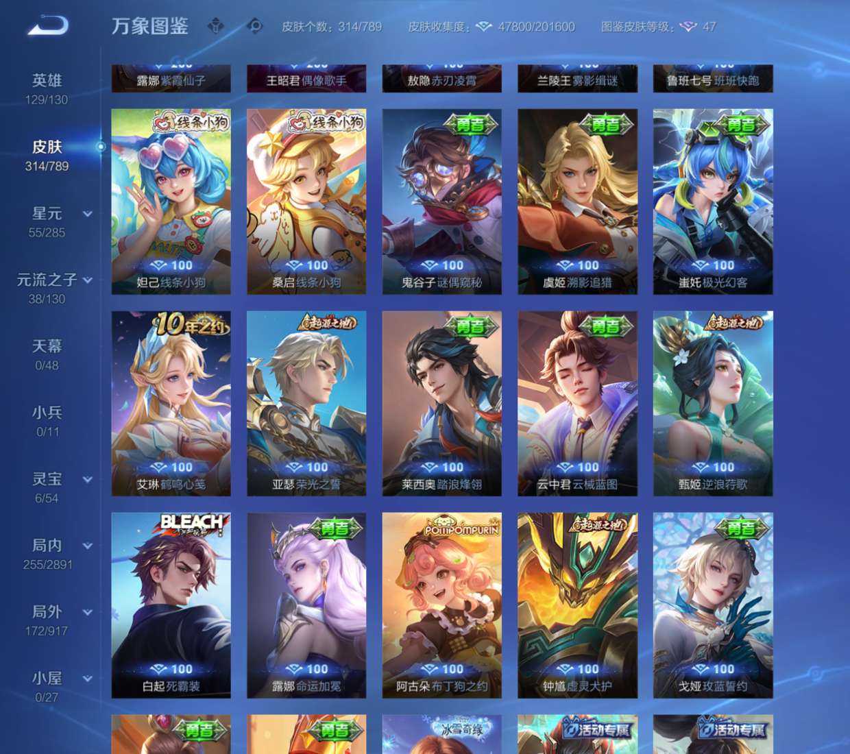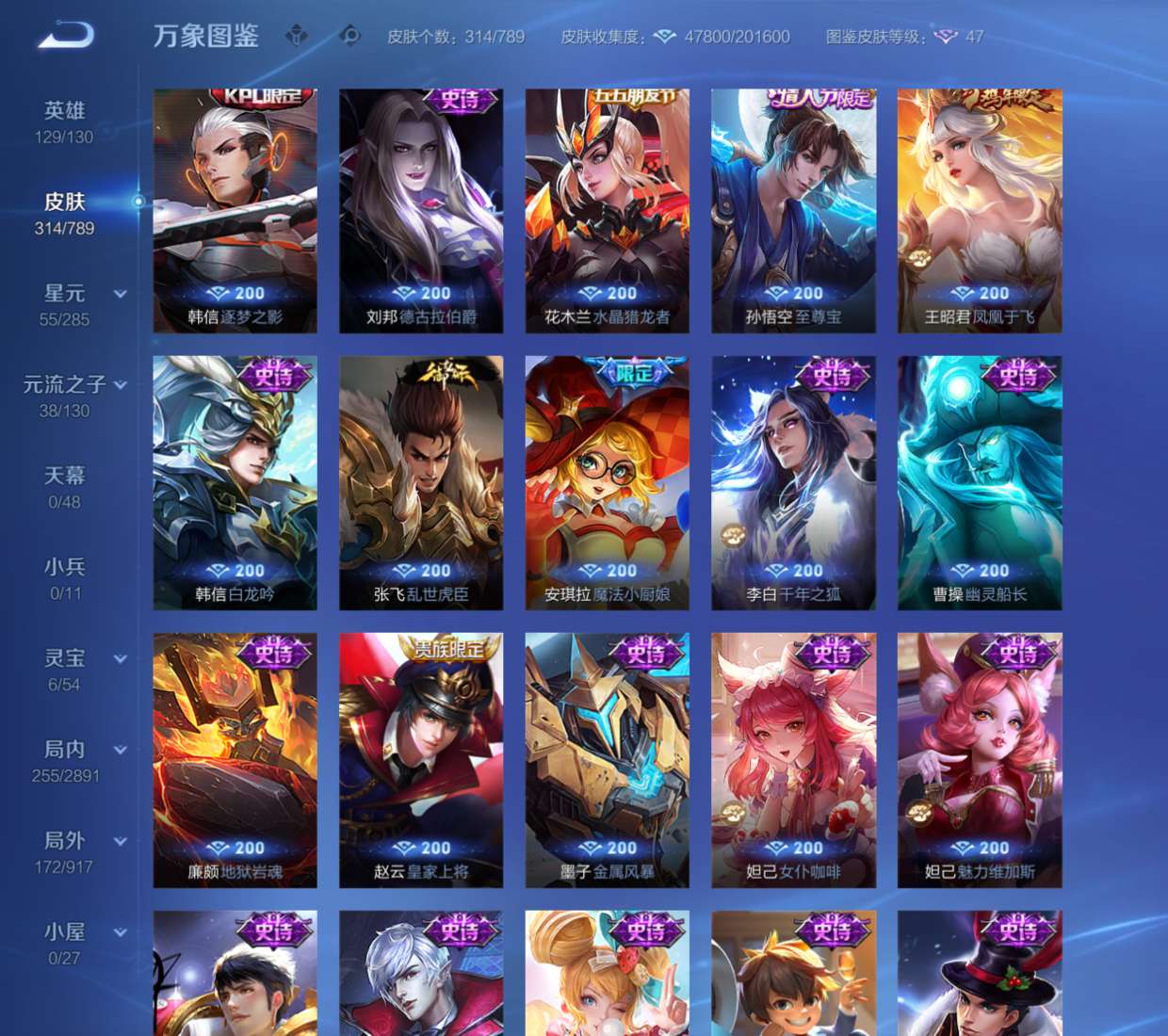 V10账号绝版皮肤自己充了1万多4个荣耀典藏