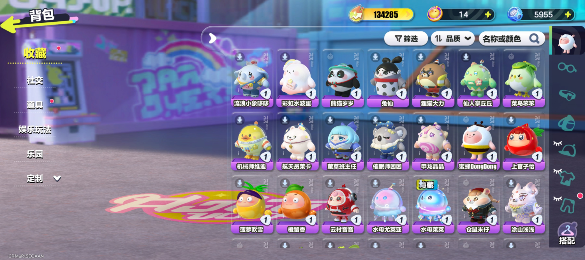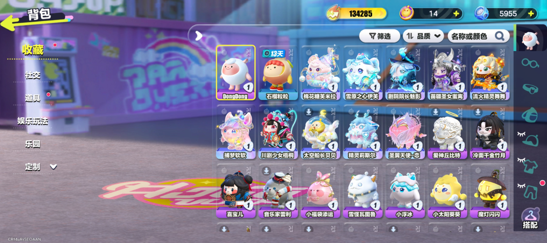 紫皮:DongDong,蜜蜂 DongDong, 爱神丘比特,冷面千金竹月,喜宝儿,音乐家蕾利,小福袋添运,雪怪瓦图鲁,小浮冰,小太阳葵葵,魔灯闪闪,吟游诗人弥亚,天狗刑云,星云咩咩,盖碗茶青青,三角龙小萨,失心熊