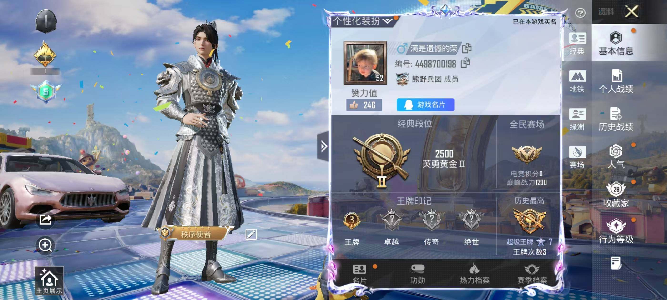63套装/枪械2/装备45/载具3/战备40/王牌印记3/热力值20454/