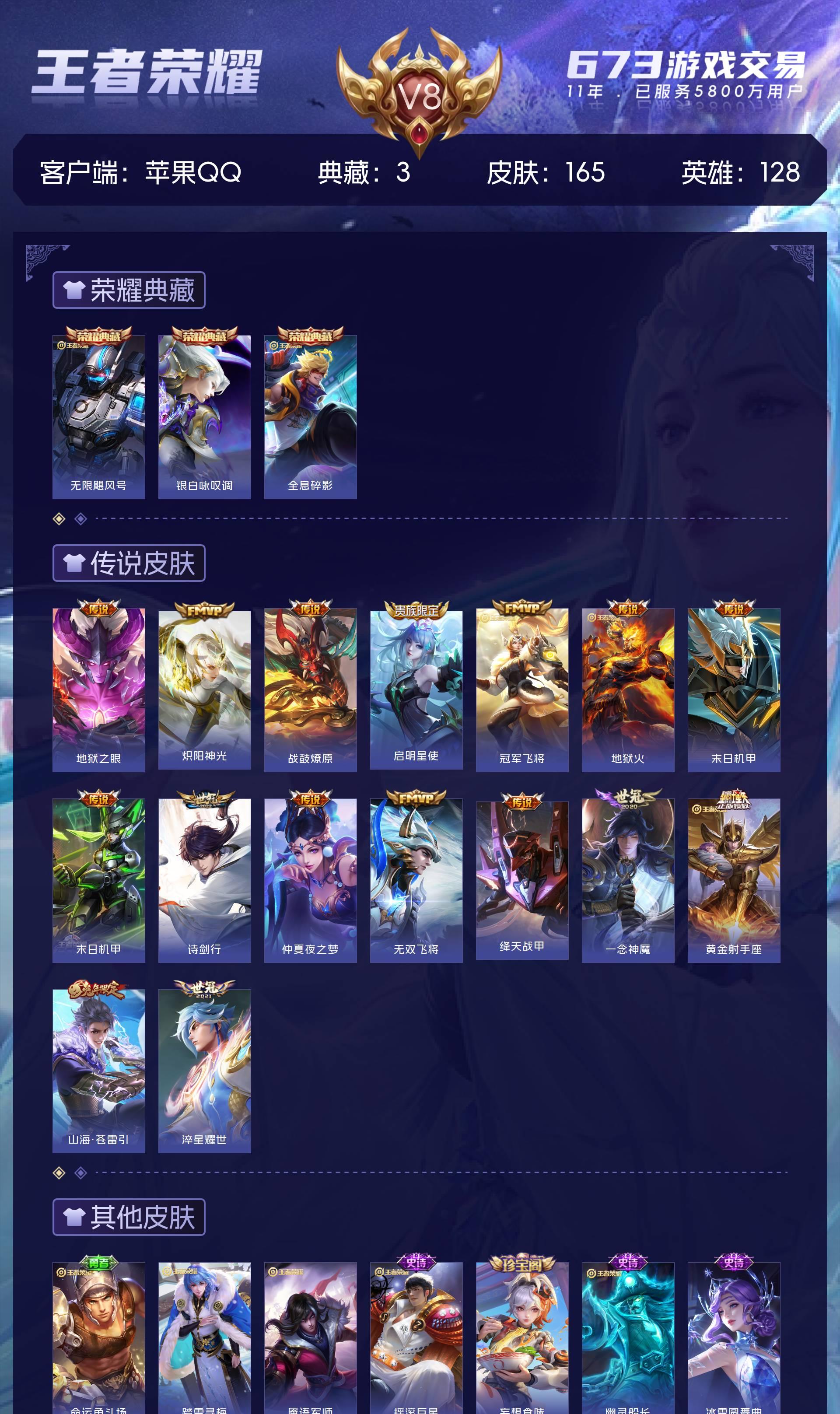 V8 皮肤165 英雄128 永恒钻石 荣耀典藏3 传说16