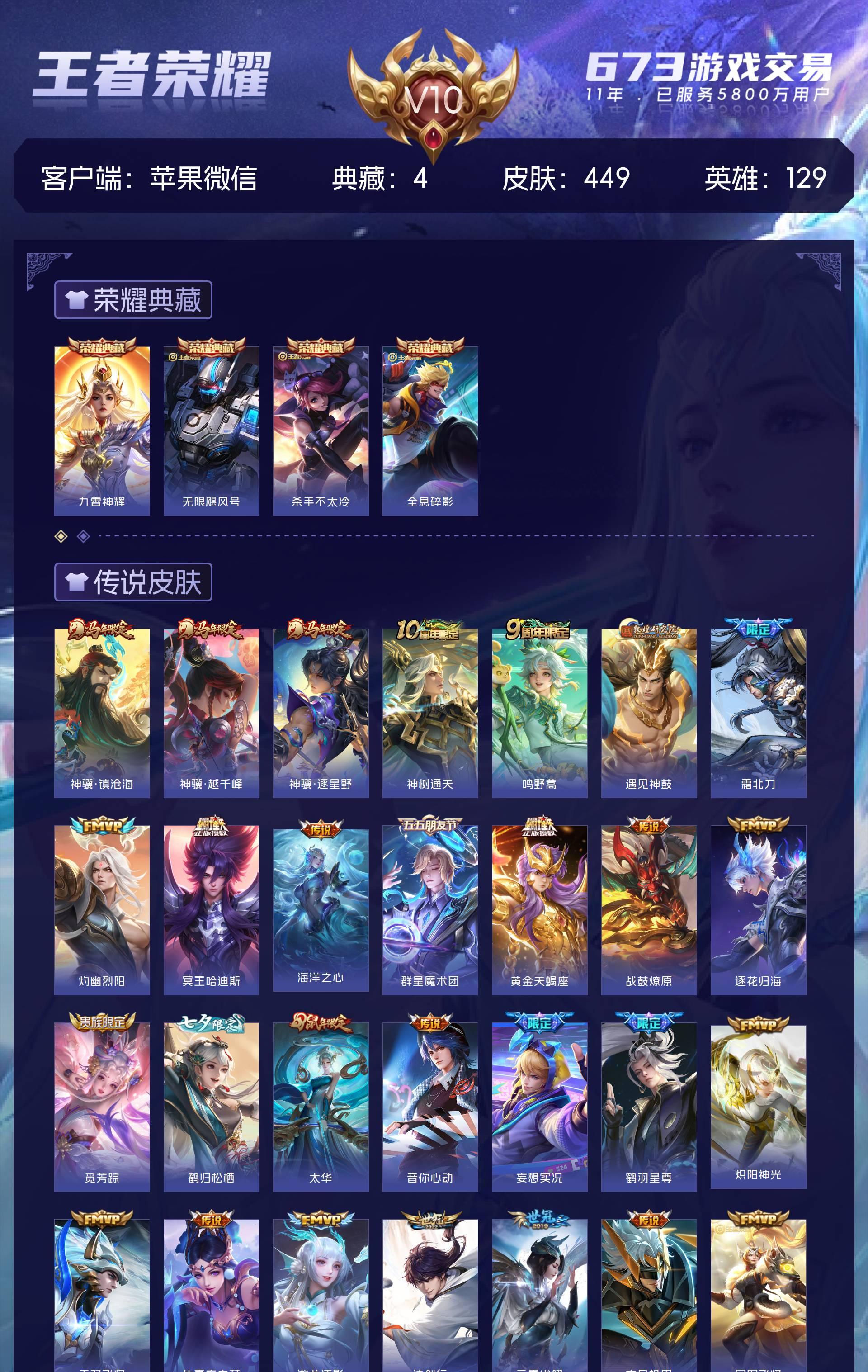 V10 皮肤449 英雄129 至尊星耀 荣耀典藏4 传说59