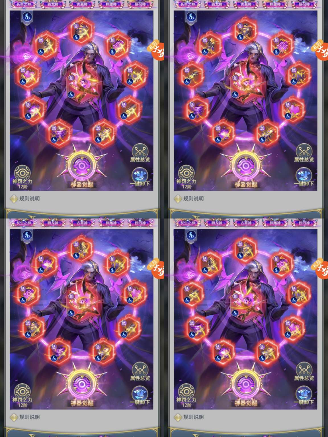 14排大奖,中枢满进阶,防御觉醒基本满,攻击觉醒有多套,积分满