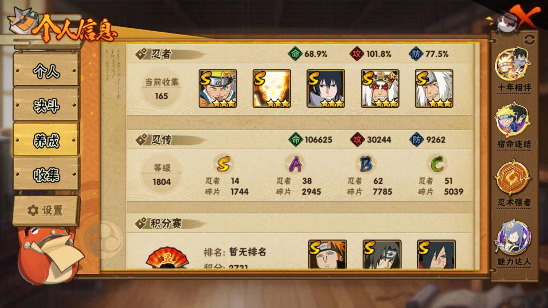 (可免费转苹果)v10,849w战力,14S级忍者数-38A级忍者数,热门A,