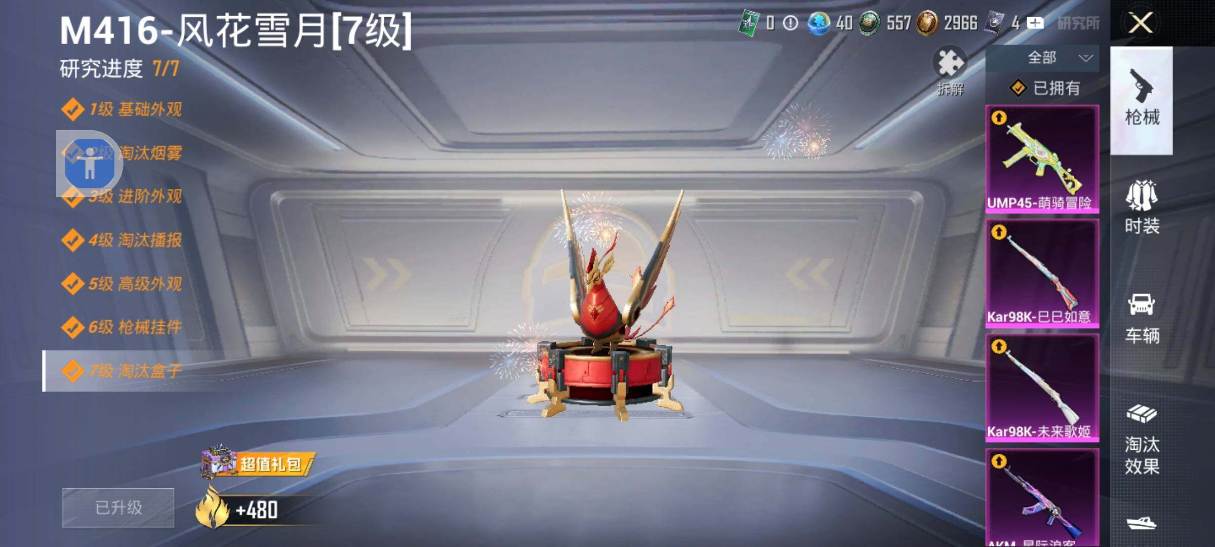 【7粉装7粉枪 梦幻火箭 音爆索尼克 缤纷油彩 深海小丑鱼 碧影闪光 兰博基尼Aventador SVJ(翡翠绿)玛莎拉蒂Ghibli(粉) M416-风花雪月(七级)】安卓手Q-7粉装-7特效枪-2载具-2粉色飞行器-67000热力值-11王牌印记-151套装-205枪皮