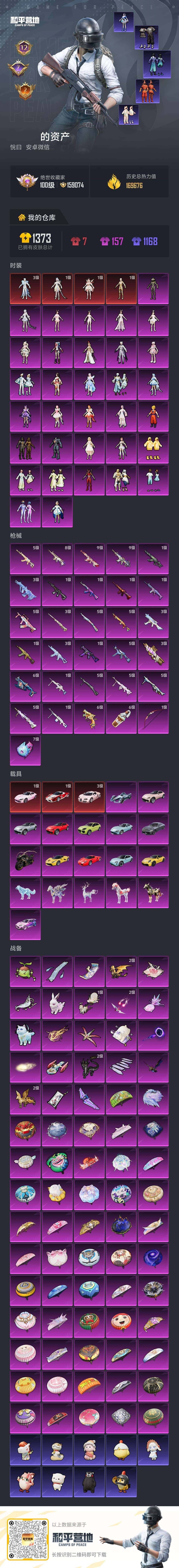 【新101/红螳螂/一级法拉利恩佐/9级灵猫魔法师M4/9级暮色AK/】安卓 微信-4神装-33粉装-31特效枪-21载具-23粉色飞行器-169696热力值-12王牌印记-224套装-336枪皮【红色载具】:法拉利Roma(假日梦)(一级),布加迪威龙(星云粉)(三级)【红色神装等级】:霜月狼主-尼诺(三级),灵驹仙姬-云歌(一级),暮色玫影-艾丽娅(一级),沙丘之主-图卡盟(一级)【红色角色