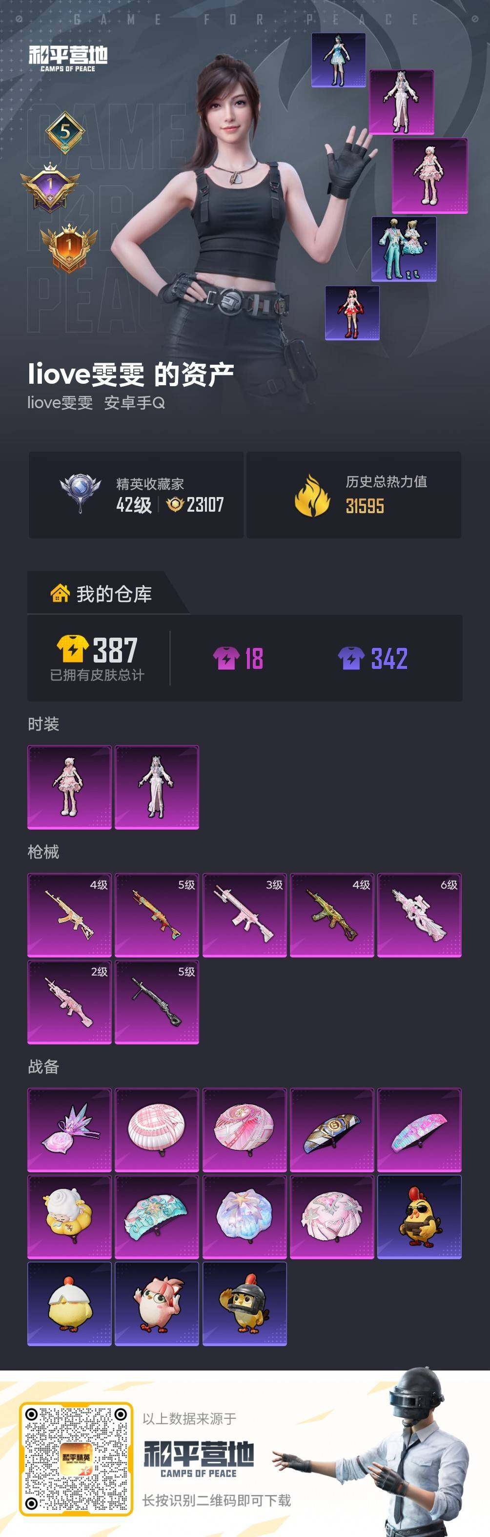 【特价出售/店主推荐】安卓 手Q-2粉装-7特效枪-1粉色飞行器-31595热力值-5王牌印记-77套装-102枪皮【热门品类】:套装-小丑鱼【粉色套装】:角色-冷漠罗丽,角色-羊梦糖心【粉色枪皮等级】:ACE32-萌骑漫游(四级),AKS-74U-森灵之息(四级),P90-冷漠罗丽(六级),Mk14-福马献瑞(五级),M417-第五大道(三级),M249-绝对恒星(二级),DP-28-豹影疾电(五级)【粉色枪皮】:ACE32-萌骑漫游,AKS-74U-森灵之息,P90-冷漠罗丽,Mk14-福马