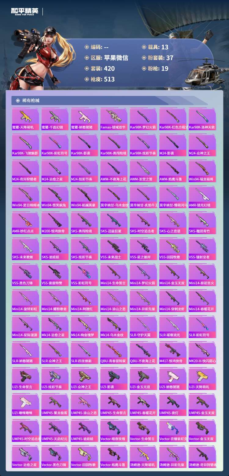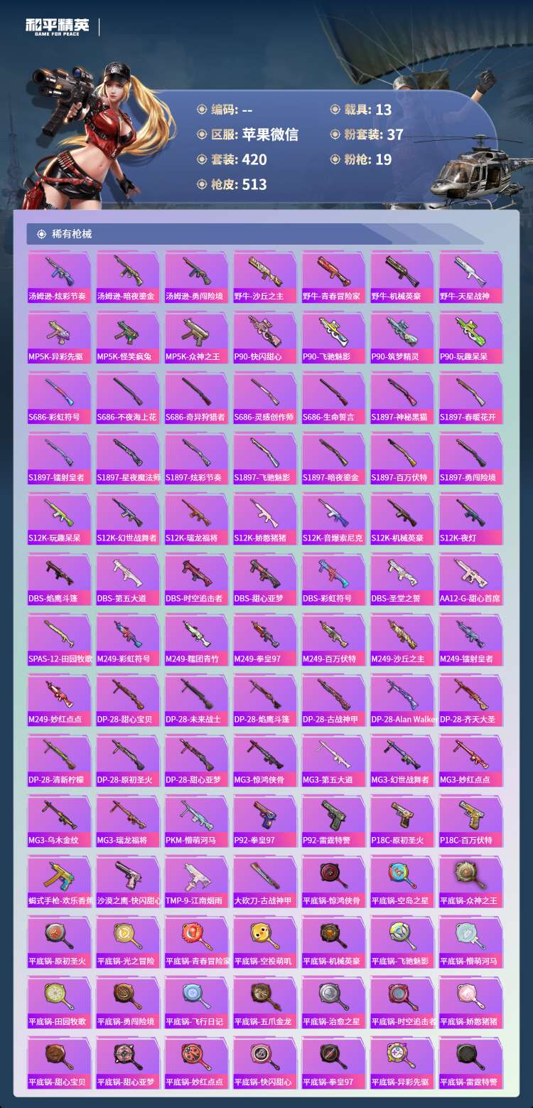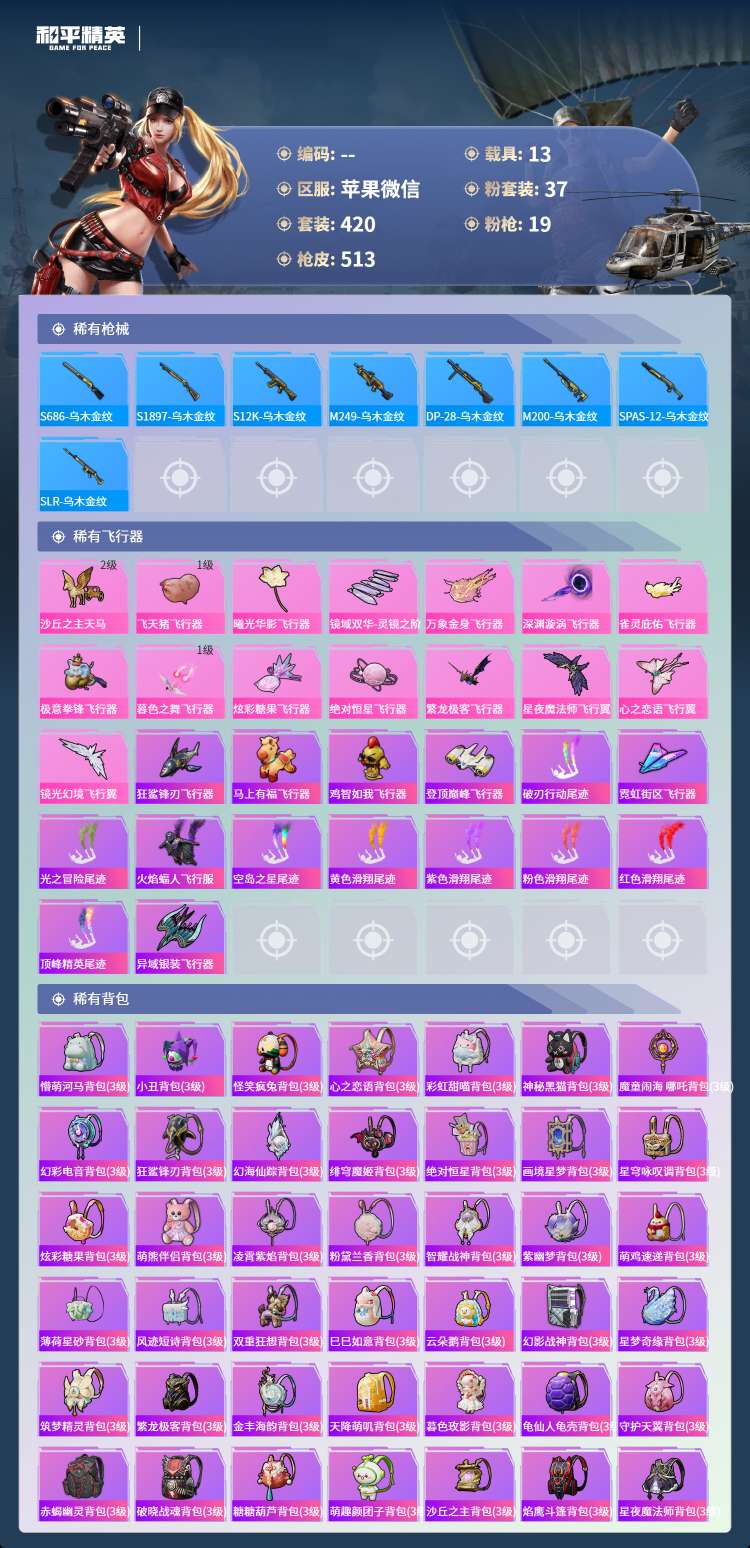 hs70706苹果微-41王牌印记-1红装-37粉装-19特效枪-13载具-203131热力值-4