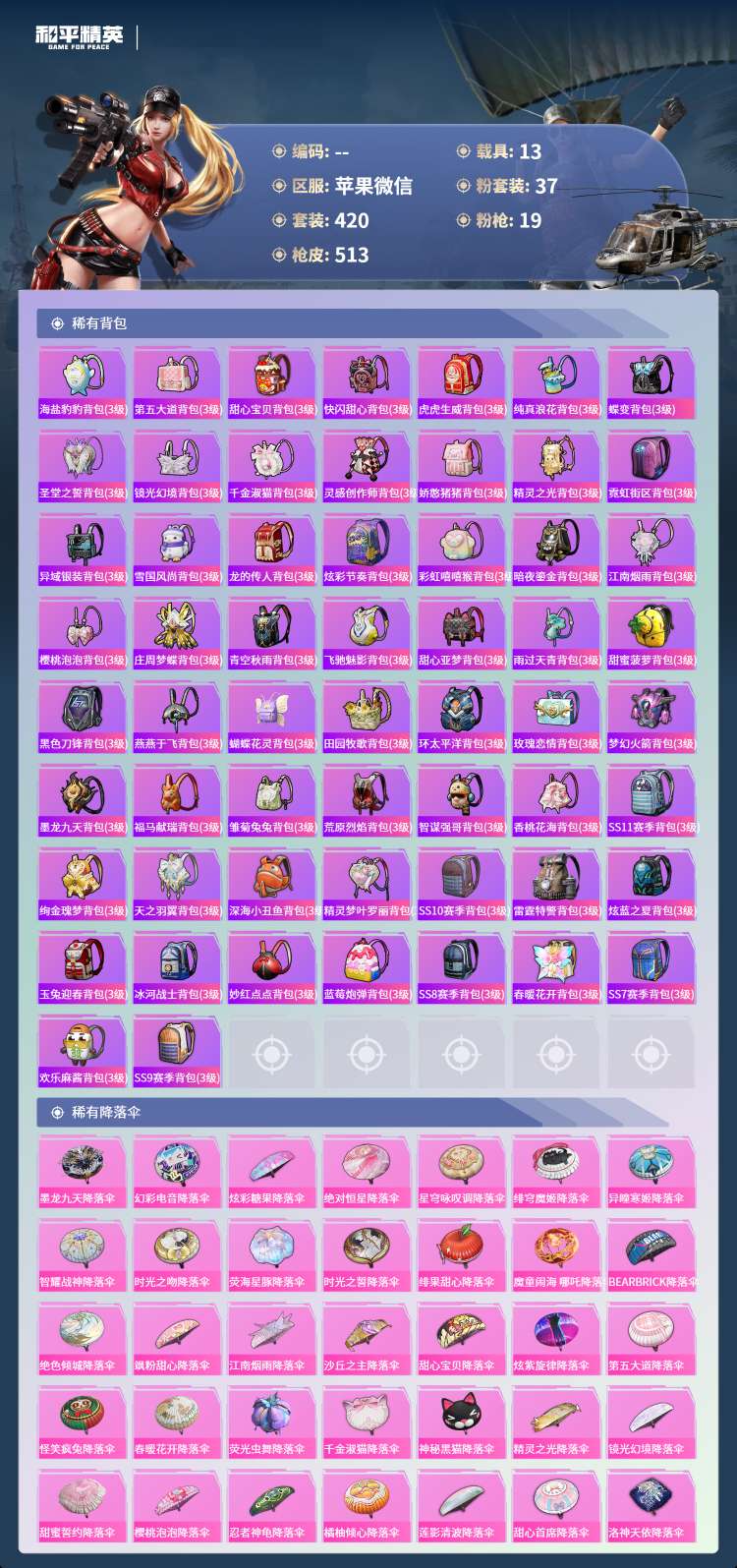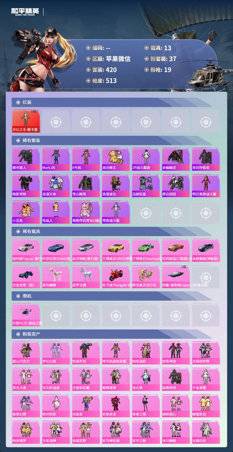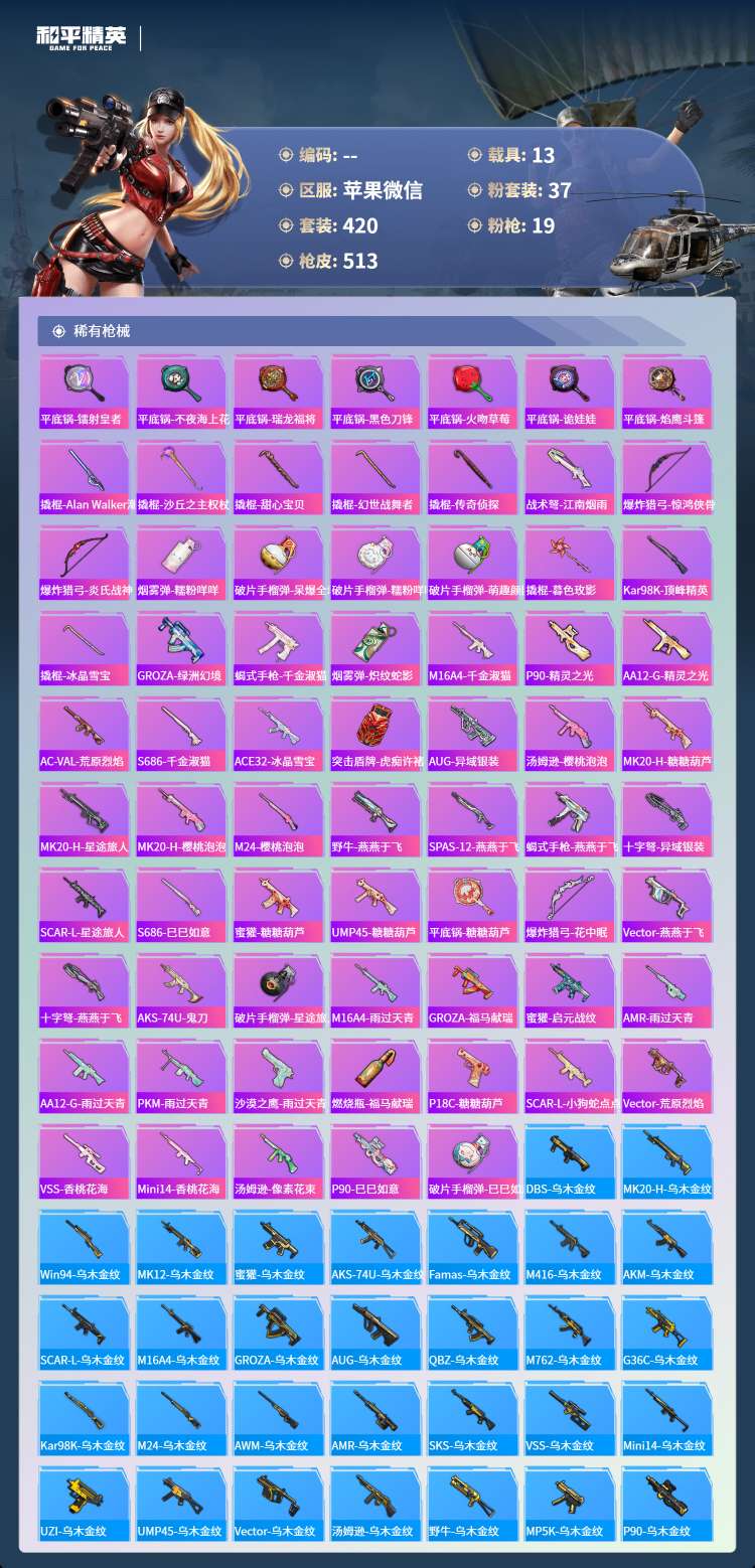hs70706苹果微-41王牌印记-1红装-37粉装-19特效枪-13载具-203131热力值-4