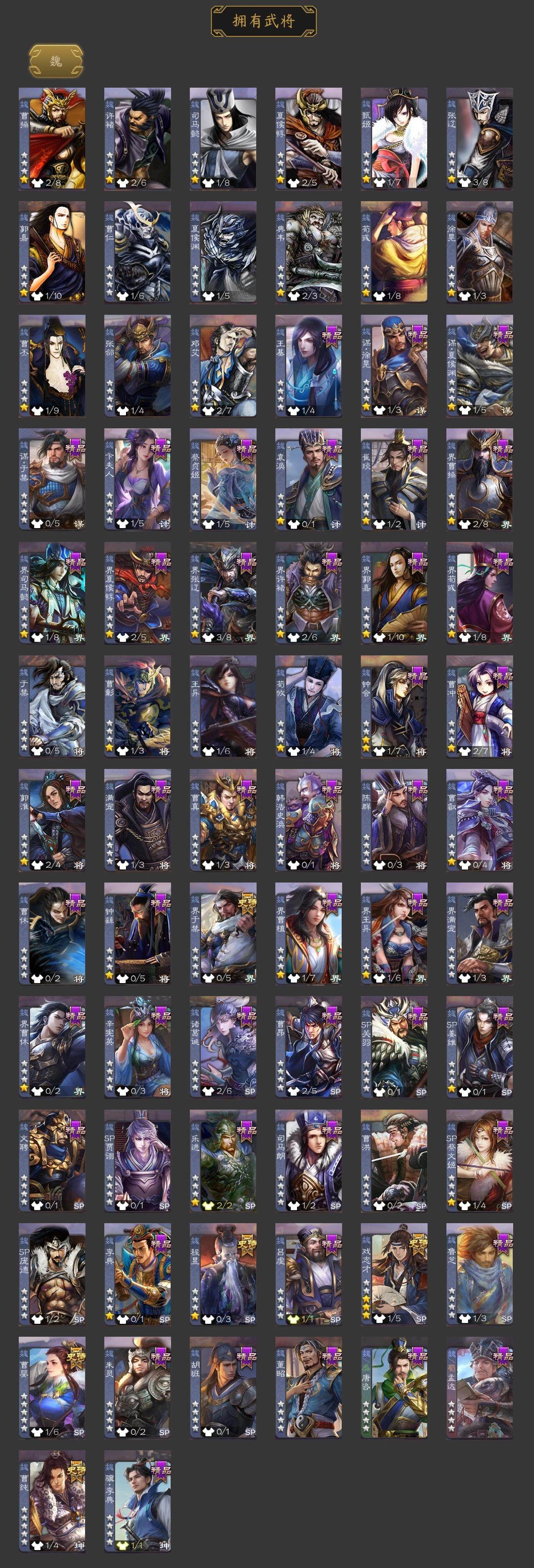 【JYSGS296】官阶:骠骑将军 VIP等级:VIP8级 史诗武将数:16 动态皮肤数:12 武将总数:275 史诗宝珠数:45 元宝数:2780 将魂数:8674 /神吕布/界于禁/程昱/戏志才/曹婴/曹纯/谋诸葛亮/谋马超/花鬘/沙摩柯/界徐盛/留赞/界李儒/麹义/公孙康/兀突骨/王基/谋徐晃/谋夏侯渊/谋于禁/卞夫人/蔡贞姬/袁涣/崔琰/界曹操/界司马懿/界夏侯惇/界张辽/界许褚/界郭嘉