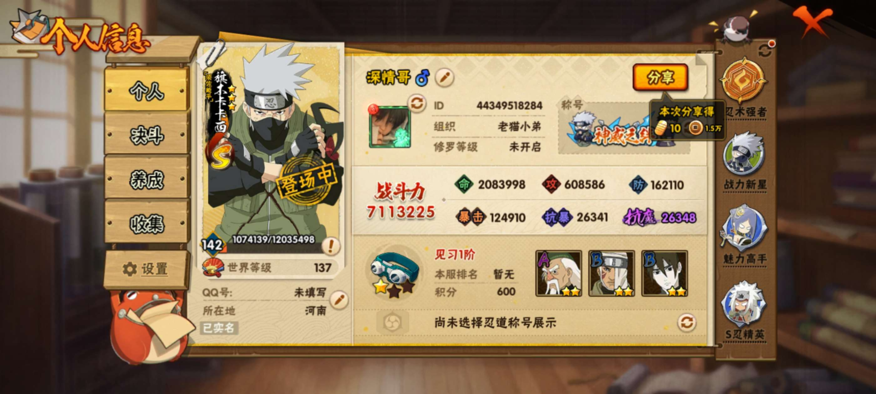 安卓QQ可二次-V10-700万战力-S忍者数:13- A忍者数:34