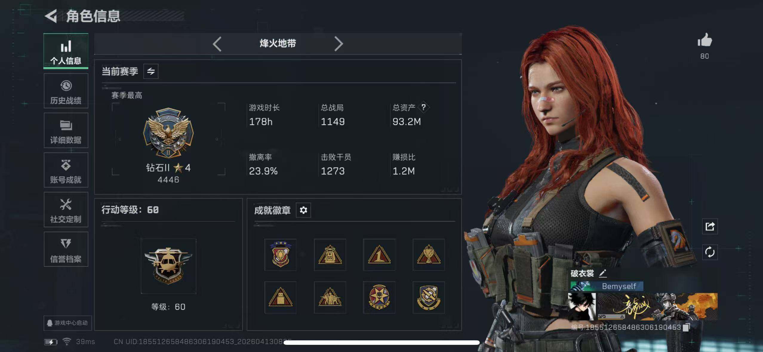 93m总资产-90k哈夫币-60烽火等级-钻石-50战场等级-上等兵