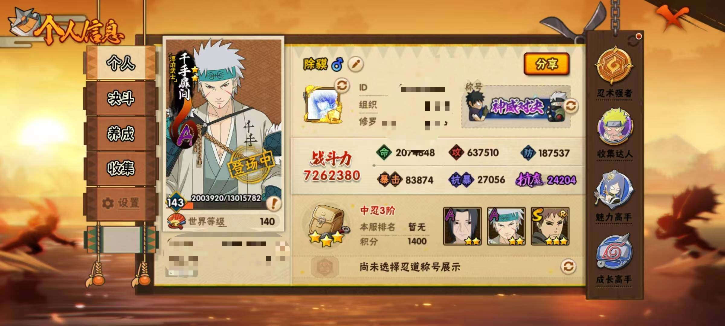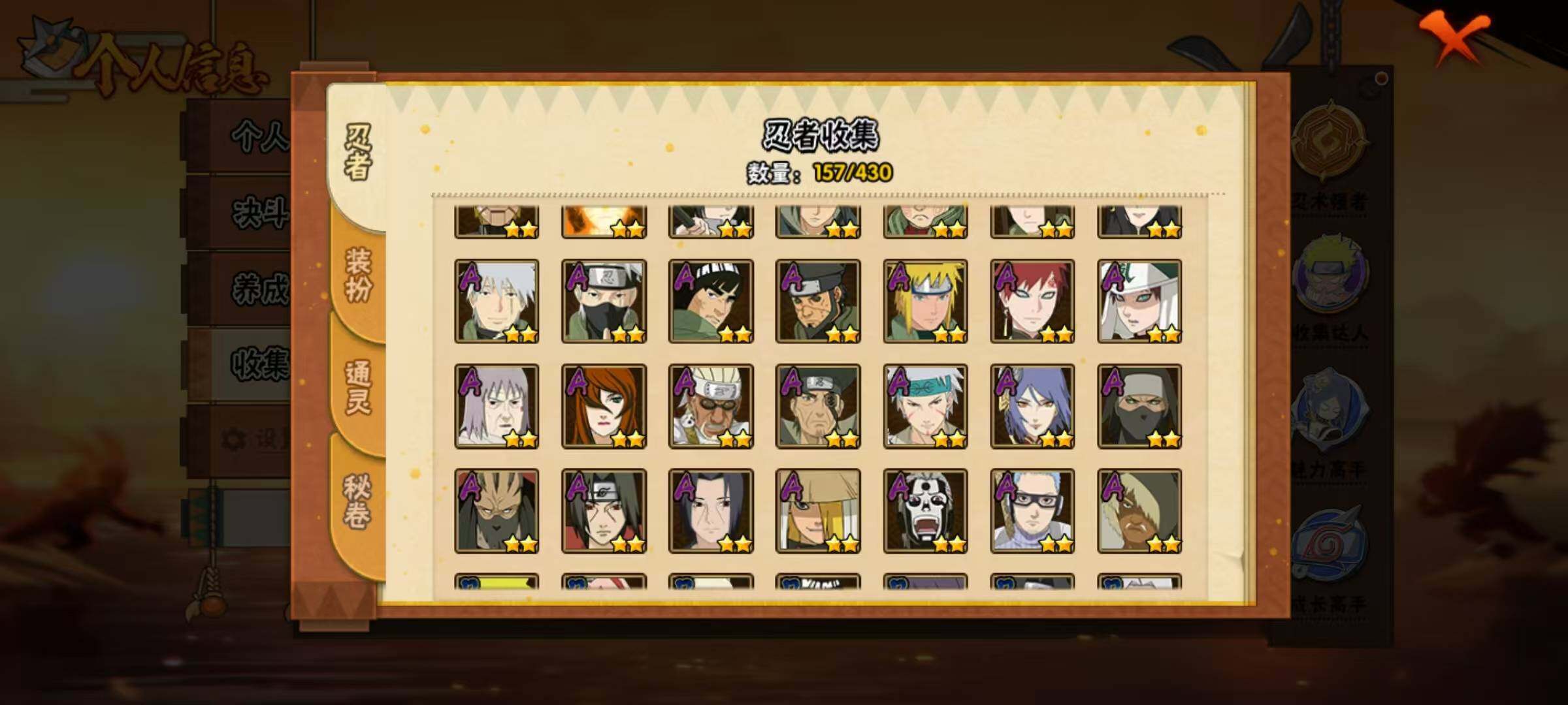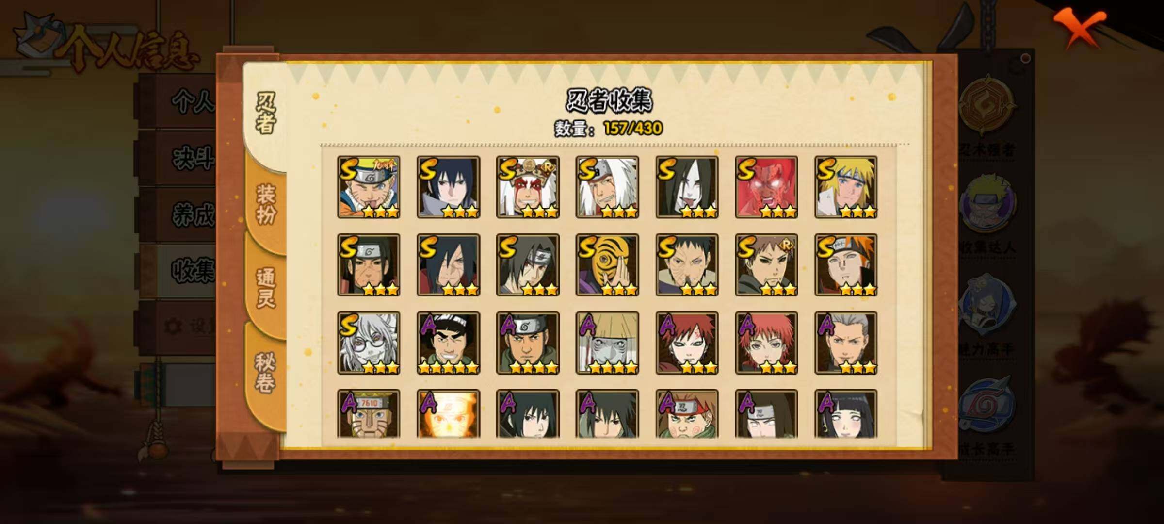 VIP等级V9/S忍数量15/A忍数量34/4星干柿鬼鲛/