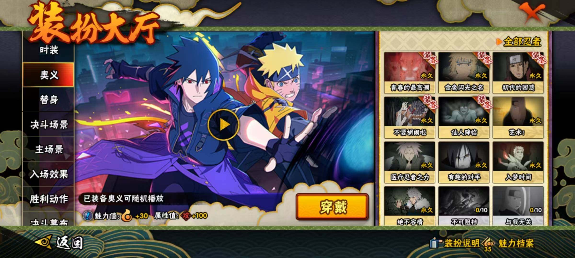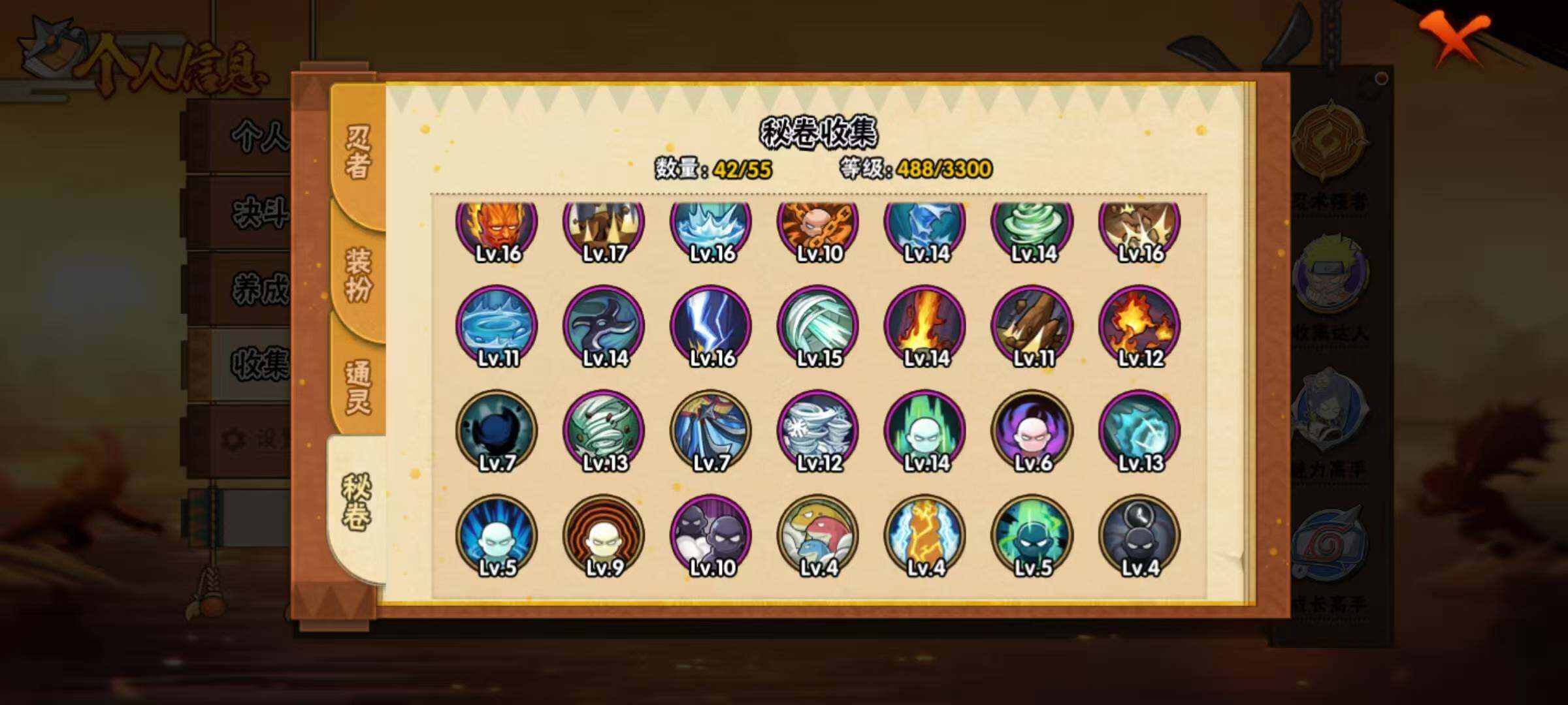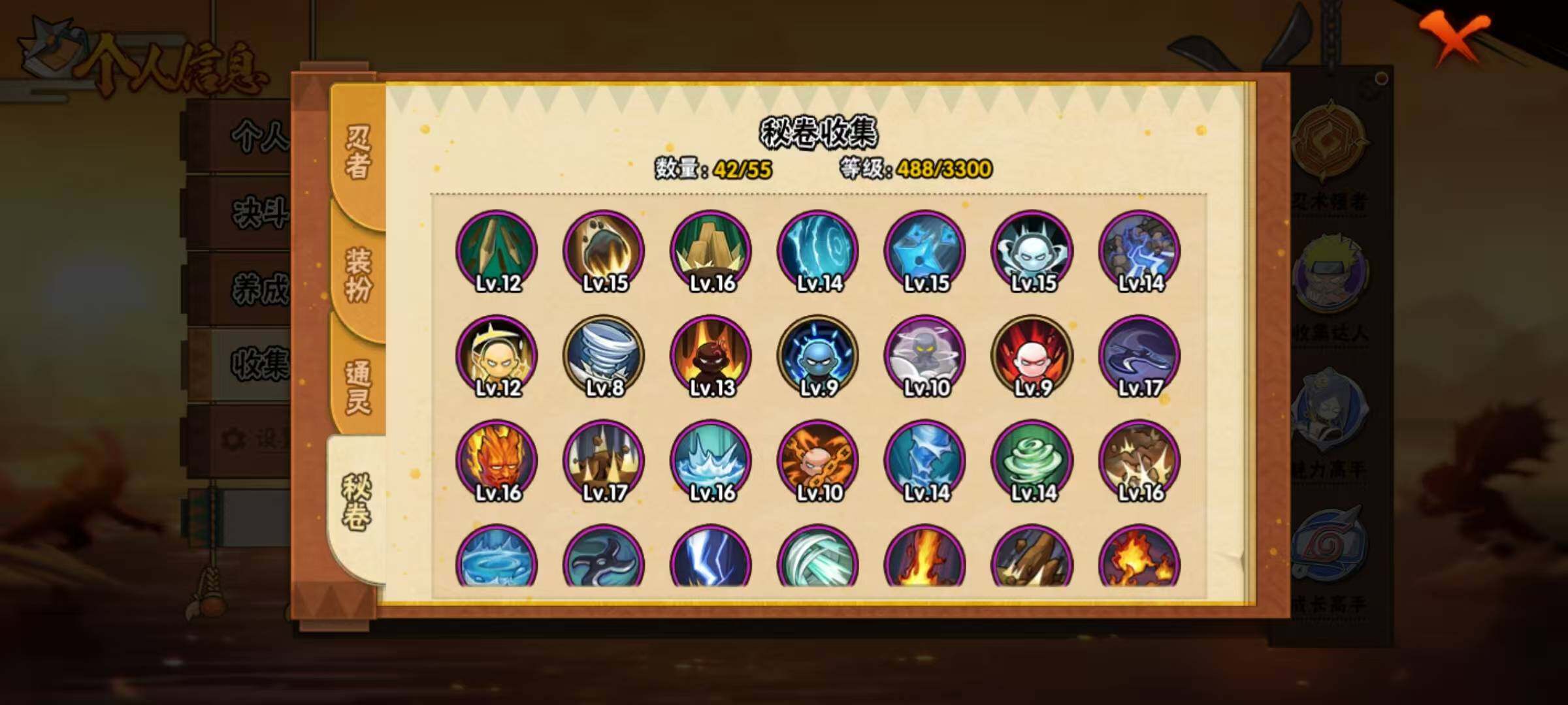 VIP等级V9/S忍数量15/A忍数量34/4星干柿鬼鲛/