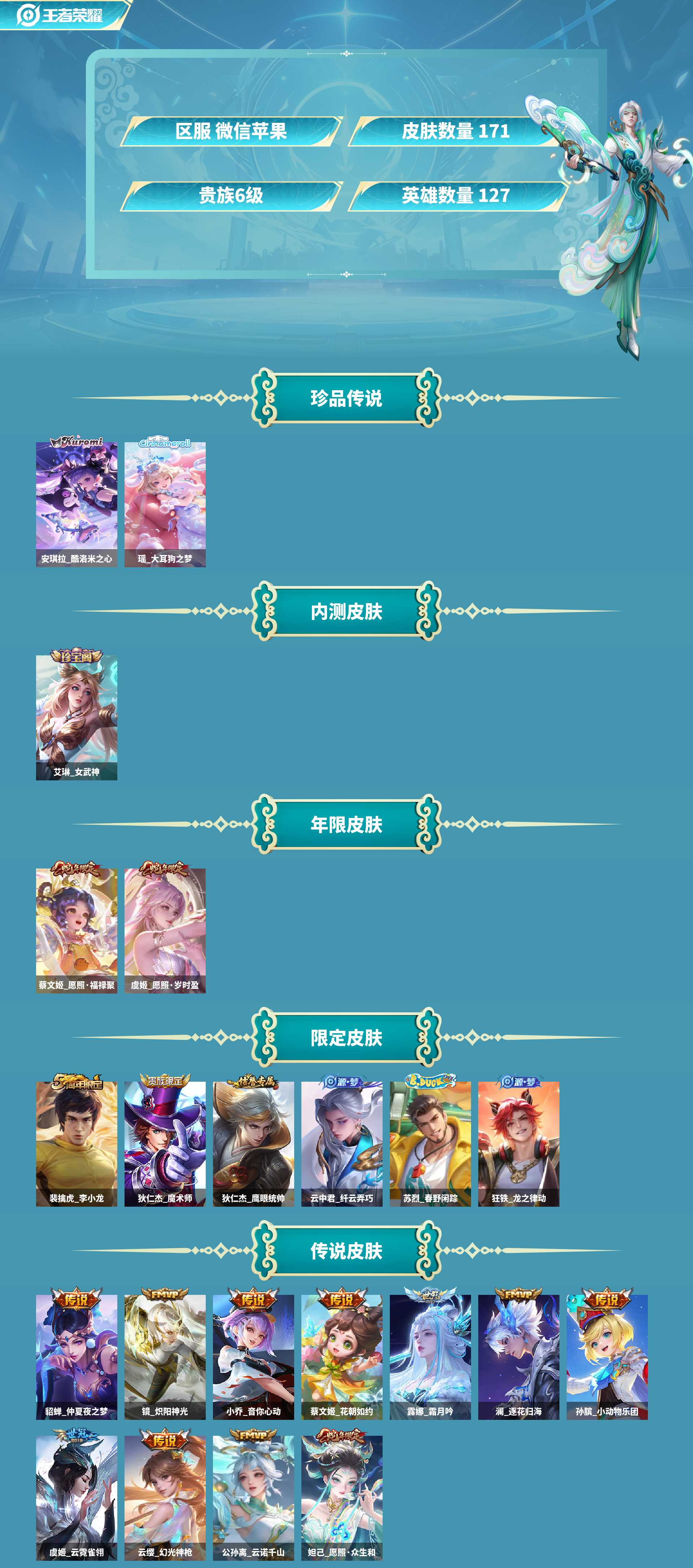 亏本清仓捡漏速抢皮肤数171传说皮肤数13珍品传说皮数2史诗