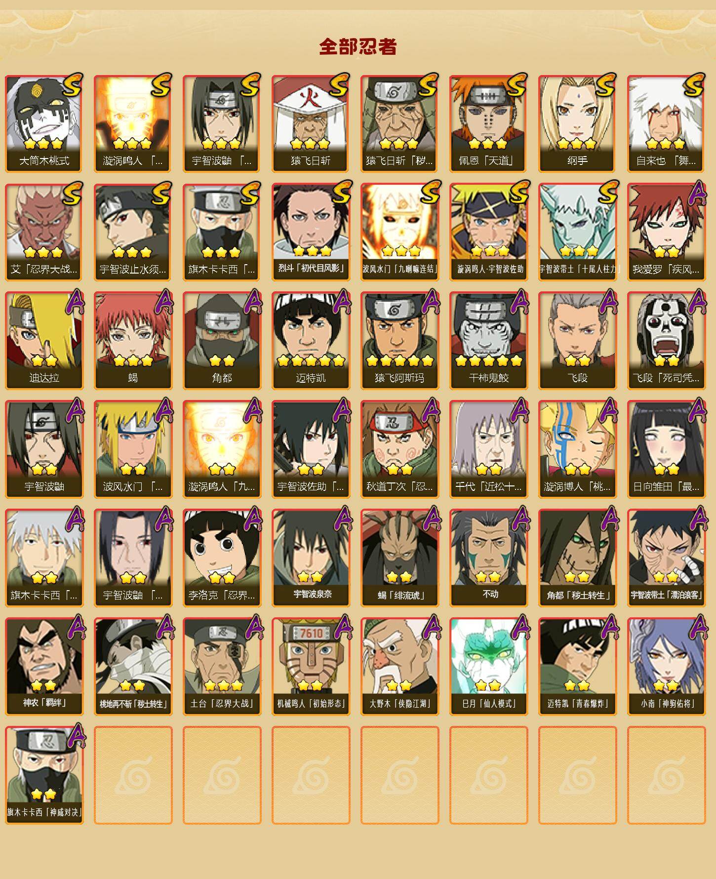 VIP等级V10/S忍数量15/A忍数量34/2星大野木「侠隐