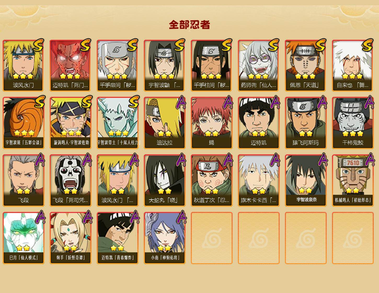 VIP等级V6/战力440W/S忍数量11/A忍数量17/