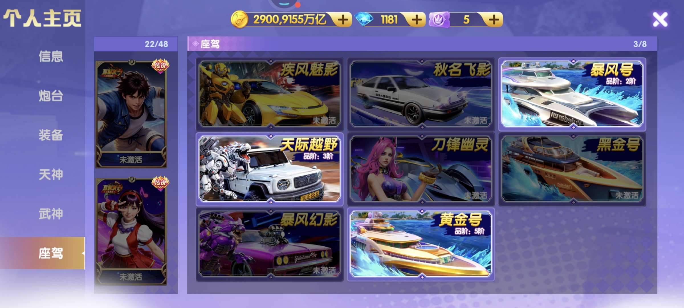 2900京,4万炮,电磁25星,天王九尾双觉醒,洪荒3级,西游羁绊,武神共鸣55星,赛季已开,三座驾
