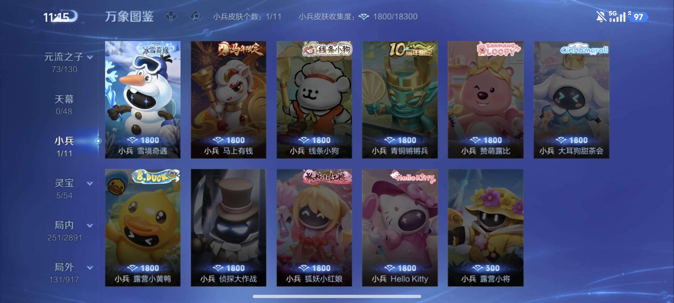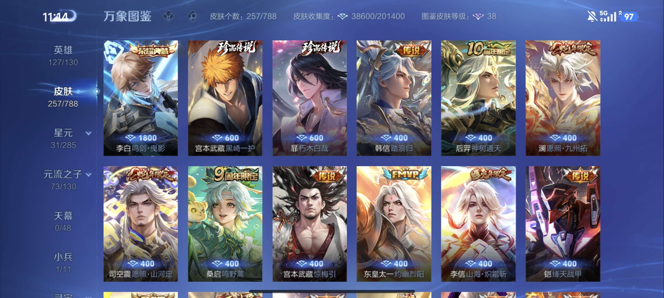 V7 皮肤257 英雄127 至尊星耀 荣耀典藏1 珍品传说2 星传说3 传说16