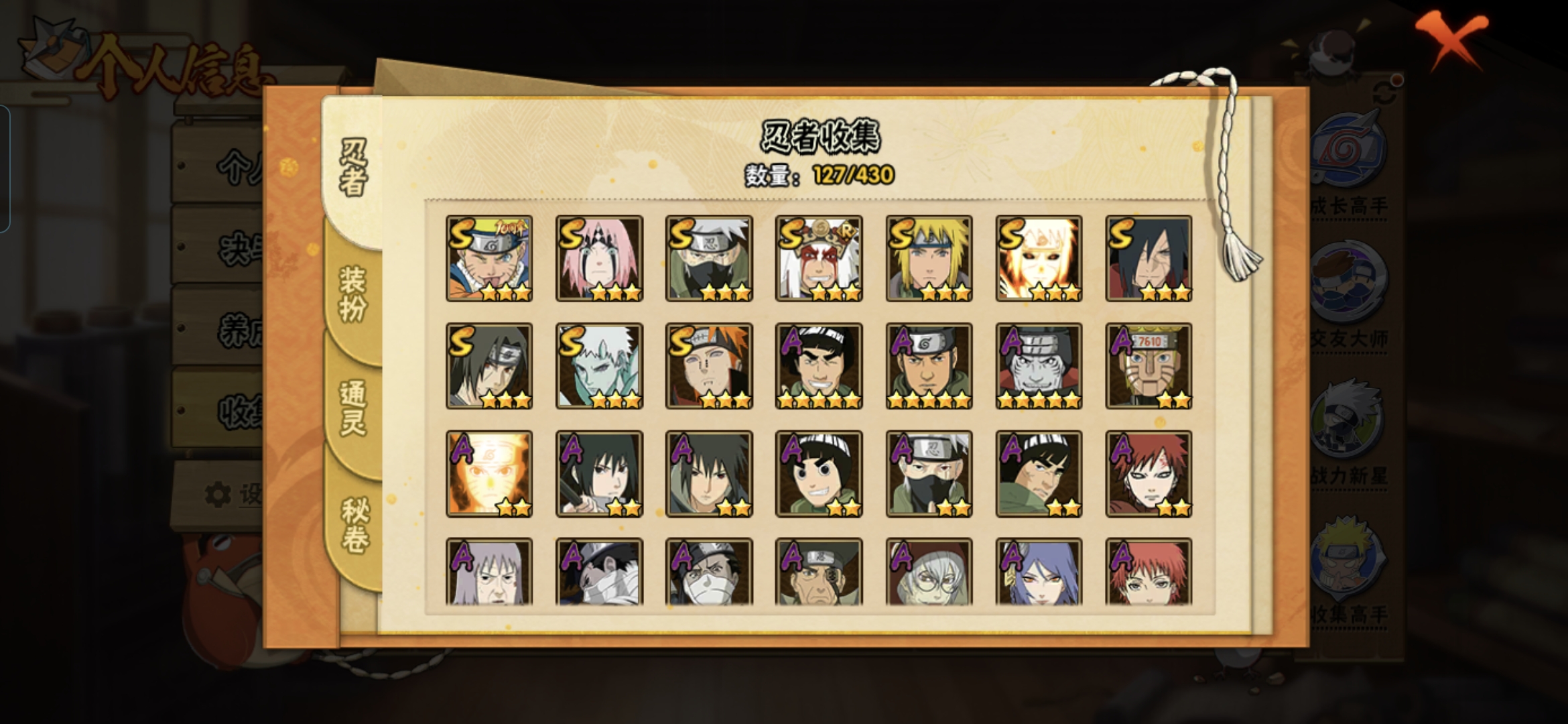 MHY4212安卓QQ【区服】3462【等级】143【S级数量】10【A级数量】26【B级数量】44【C级数量】47【S级】宇智波带土「十尾人柱力」 旗木卡卡西「须佐能乎」 佩恩「天道」 波风水门「九喇嘛连结」 宇智波斑「秽土转生·解」 春野樱「忍界大战」 自来也「舞之豪杰」 漩涡鸣人·宇智波佐助 波风水门 宇智波鼬「须佐能乎」