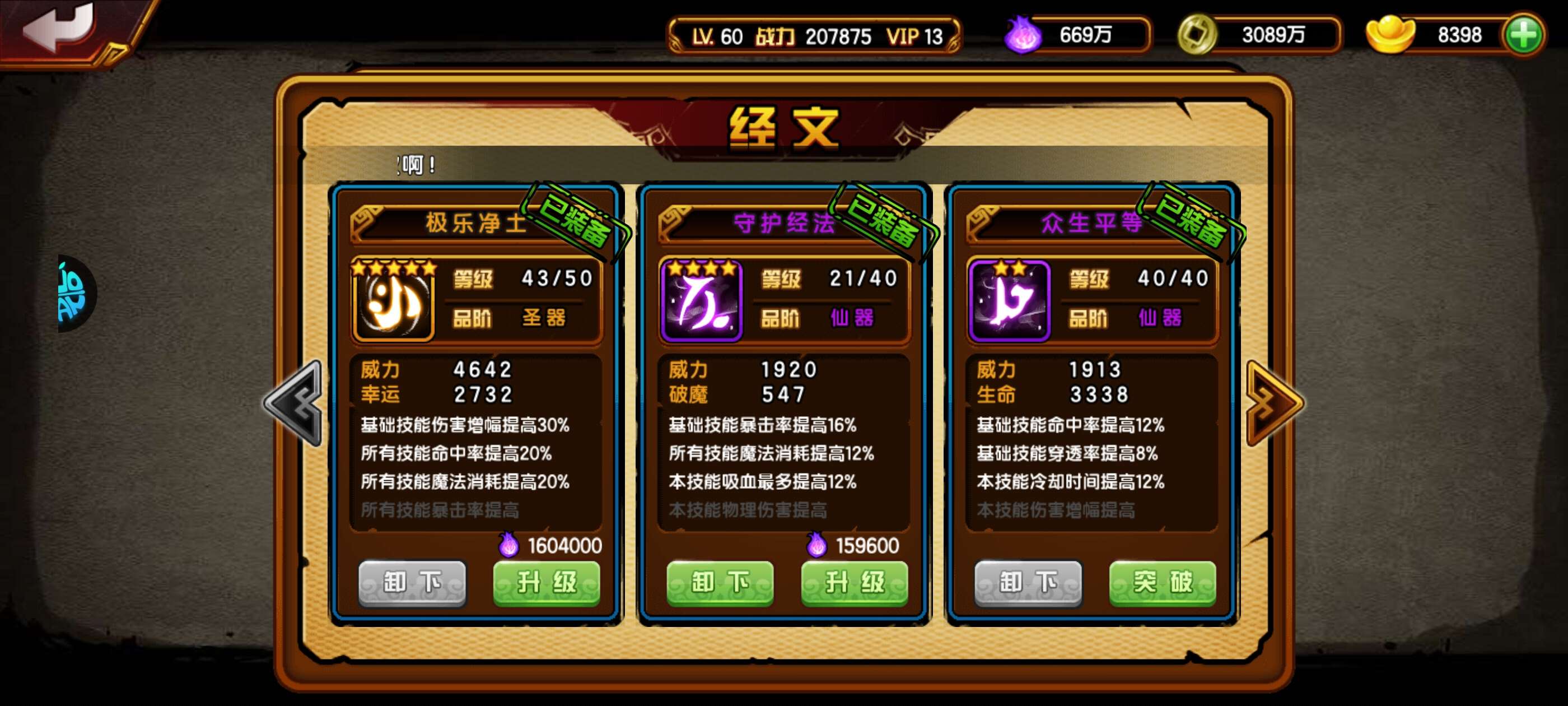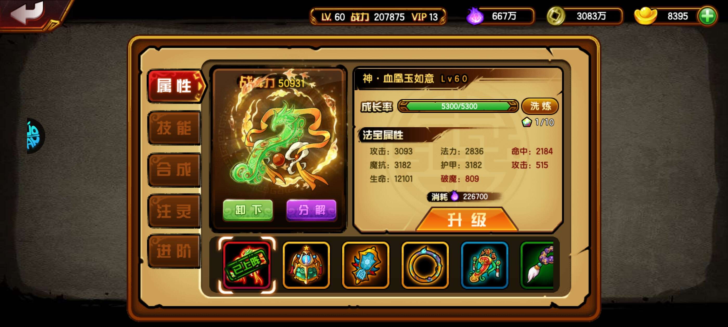 大月卡有一年小月卡有两年,差180元马上V14。返利也可领。如意技能三极品。翅膀足够毕业,心法马上可