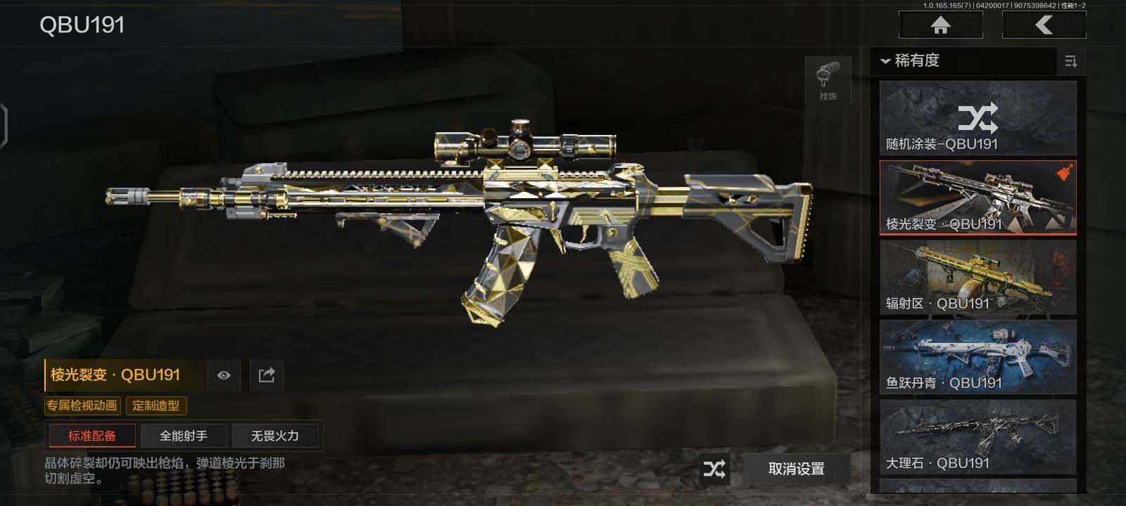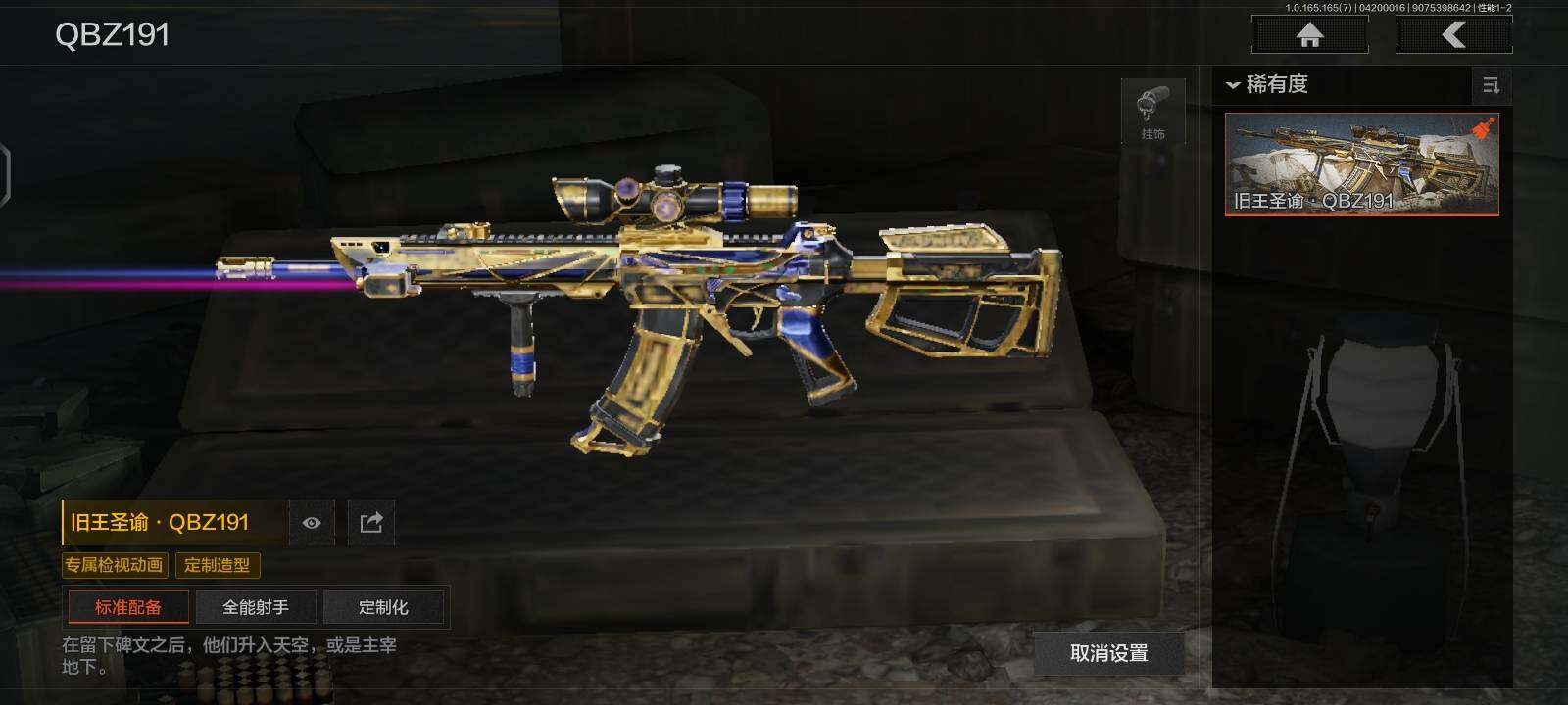【金色枪皮】:地脉深处FAL,镀火熔金·H416,战术大师·AEK,旗帜·AEK,旧王圣谕·QBZ191,旧王圣谕·VSS,干炼铁阵·MK14,棱光裂变·QBU191,