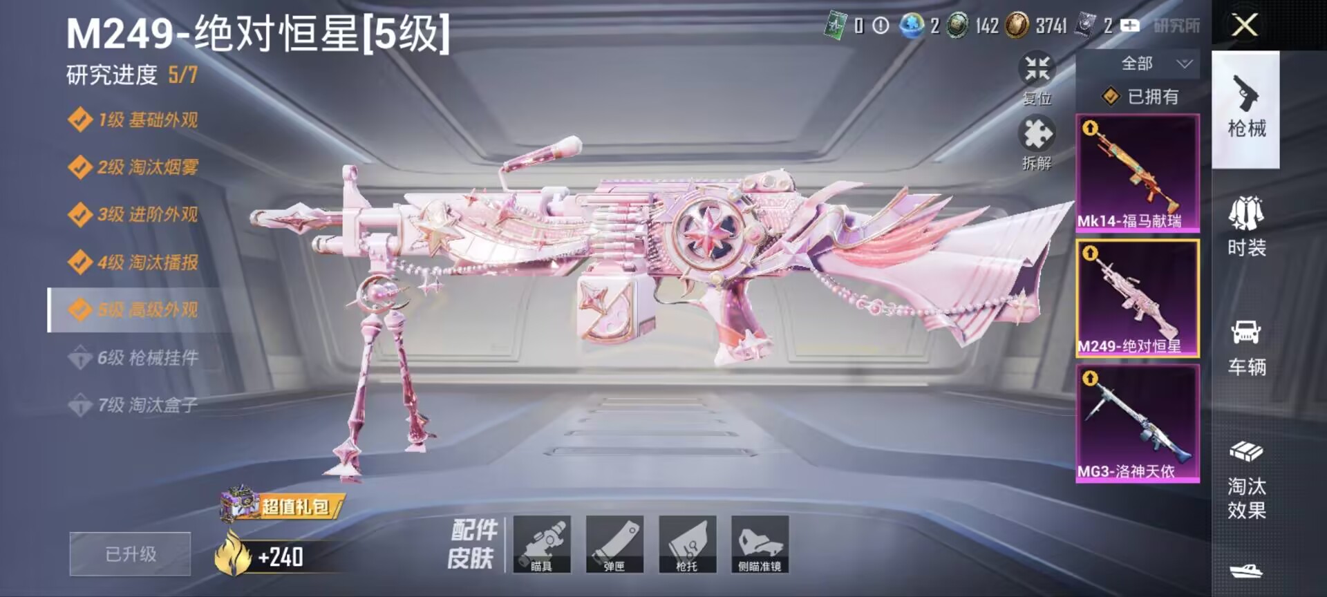 M1047763【2粉 3特效 梦幻火箭】安卓手Q-2粉装-3特效枪-51套装-77枪皮-2王牌印记-坚韧铂金Ⅰ-23336热力值【2粉装】梦幻火箭,角色-绝对恒星【3特效枪】MG3-洛神天依[5级],M249-绝对恒星[5级],Mk14-福马献瑞[5级]【5飞行器】狂鲨锋刃飞行器,登顶巅峰飞行器,马上有福飞行器,炫彩糖果飞行器,绝对恒星飞行器【1头盔】梦幻火箭头盔【2背包】梦幻火箭背包,甜心宝贝背包【123其它衣服和枪皮】暗夜魅影,青翼流星,特种颜团子,玲珑侠影,天籁歌者,竞技名士,福星高