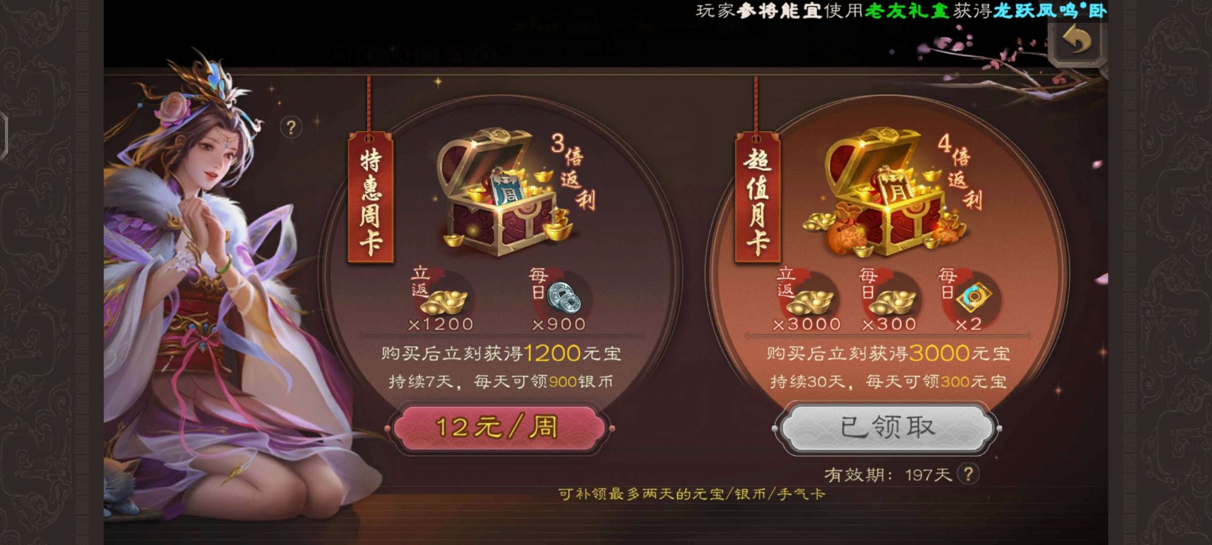 官服活绑势魏延,星黄忠,戏子神赵,年卡190多天,还有1w5元宝