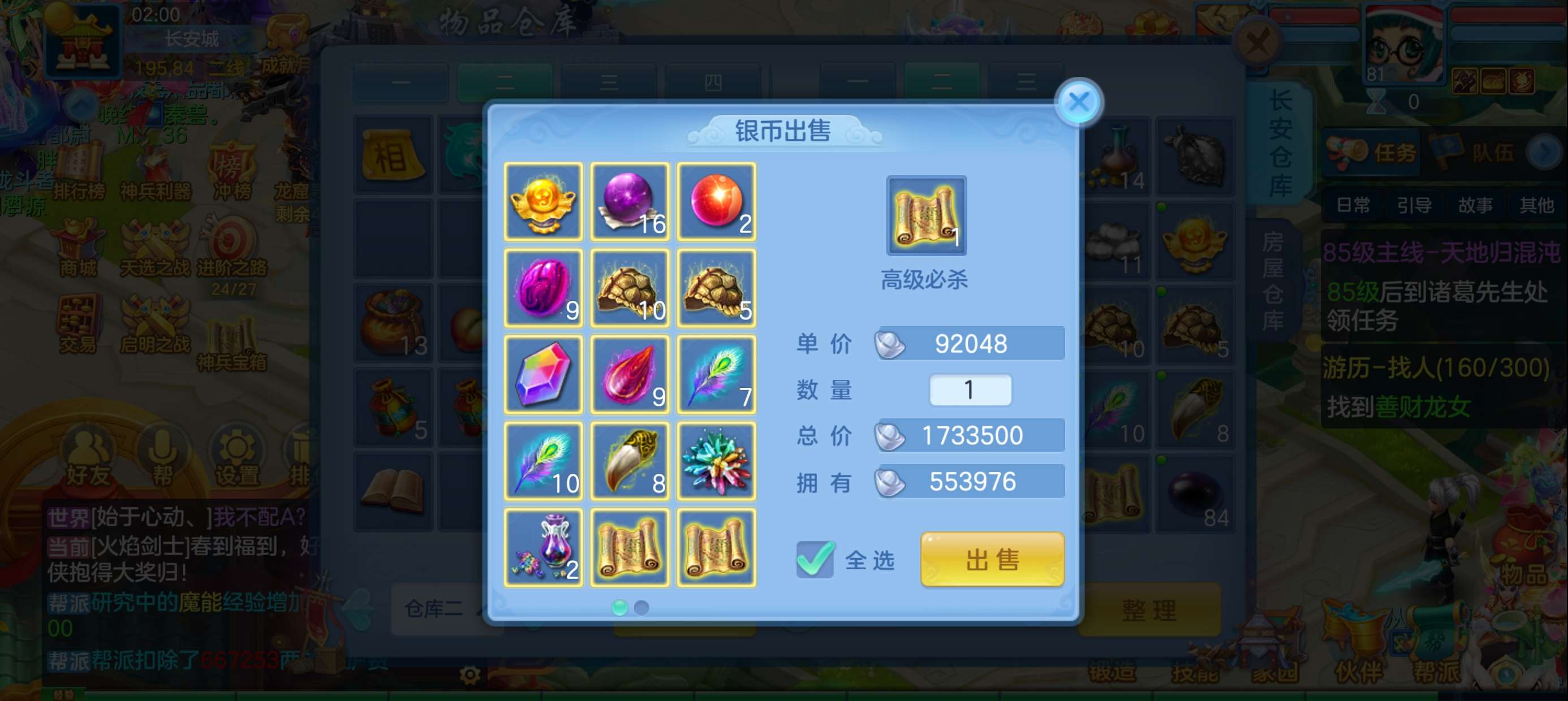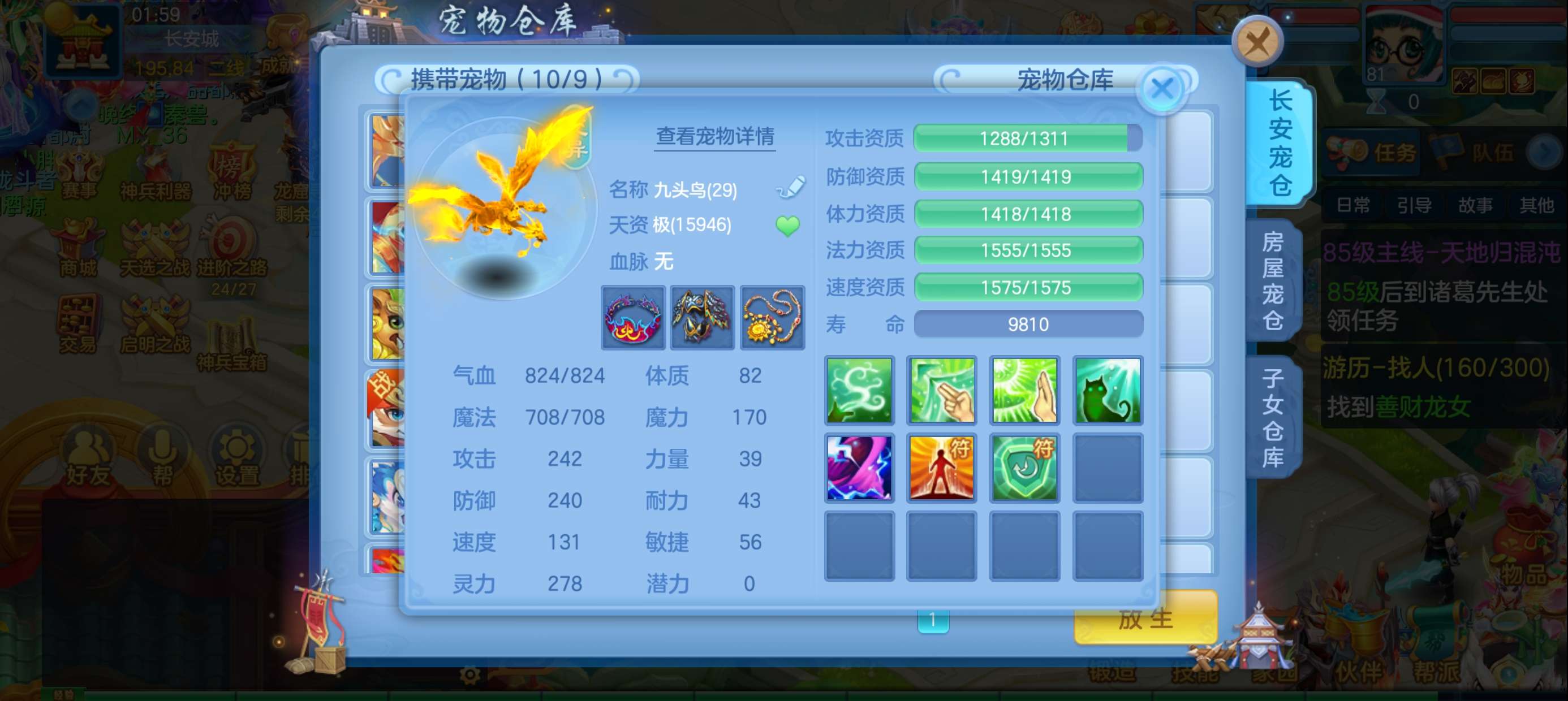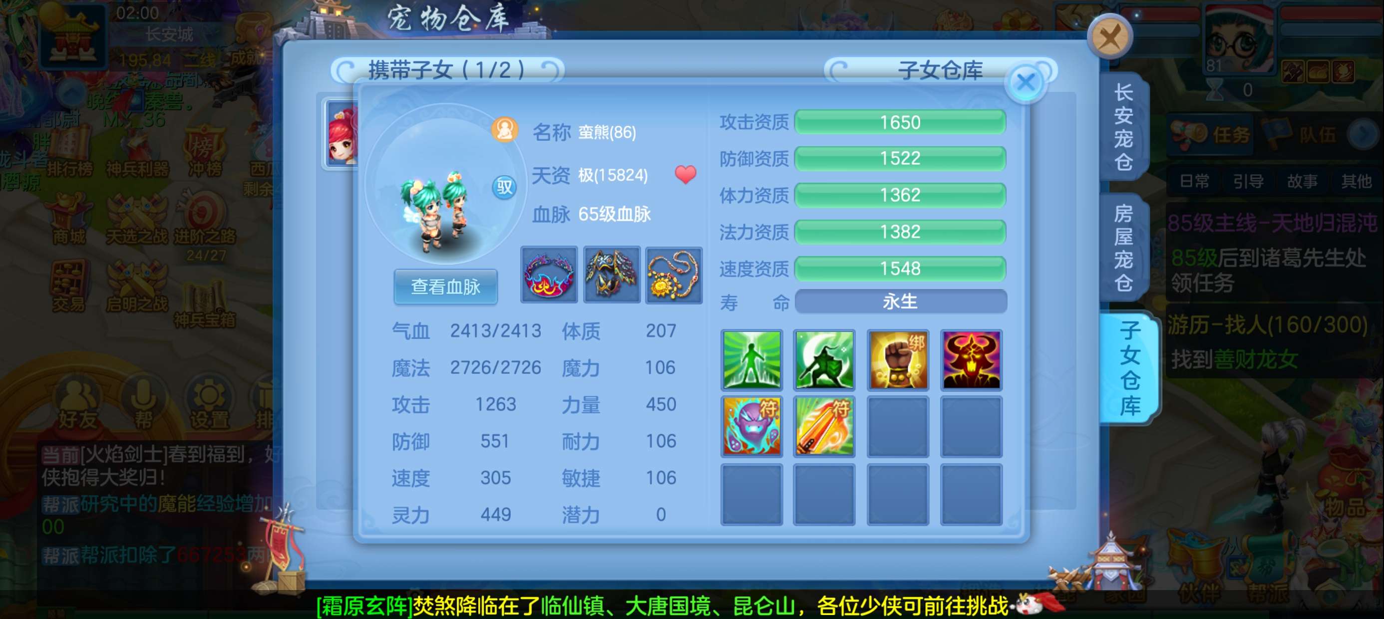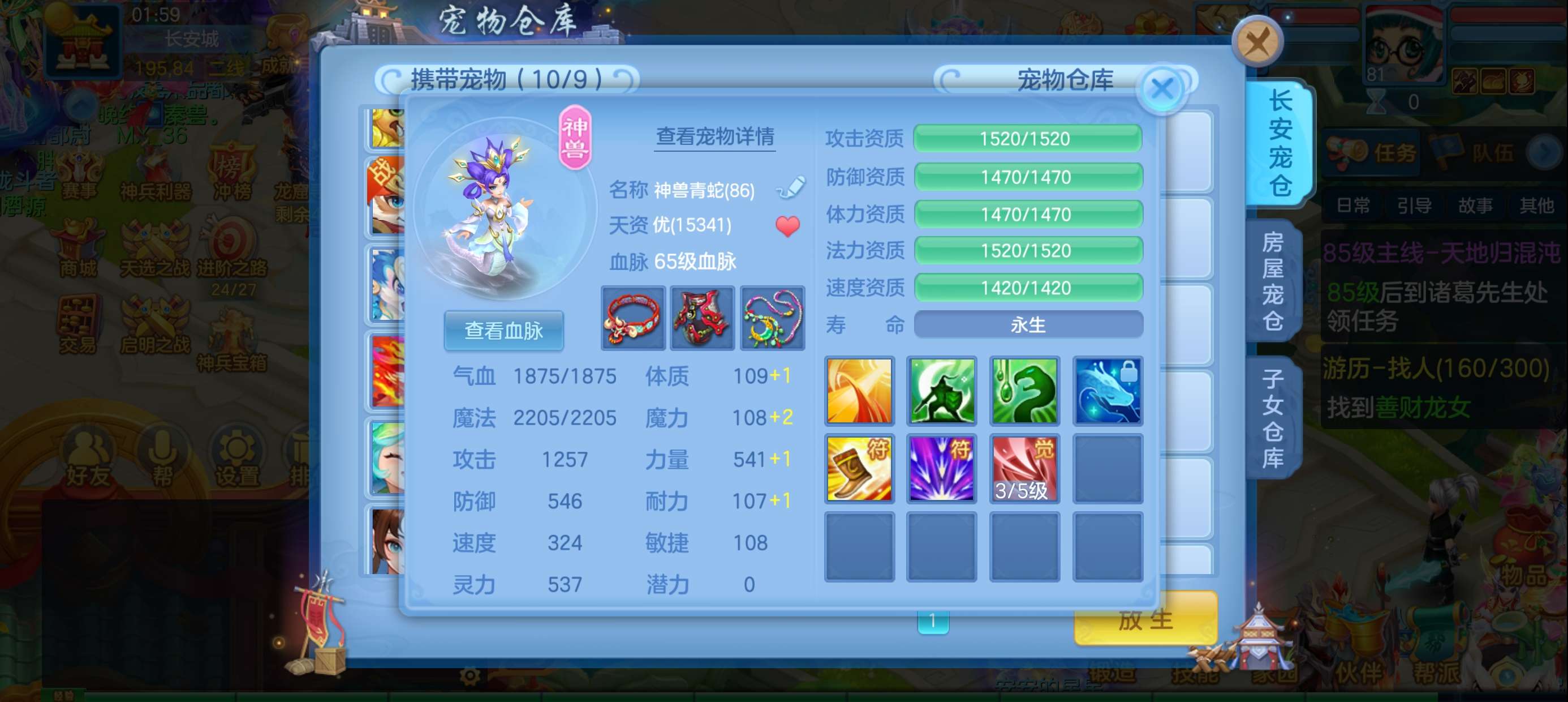 马到成功81级女冥月,宝宝齐全,220万银子资源,千万铜币,神兽蛇,43内丹碎片