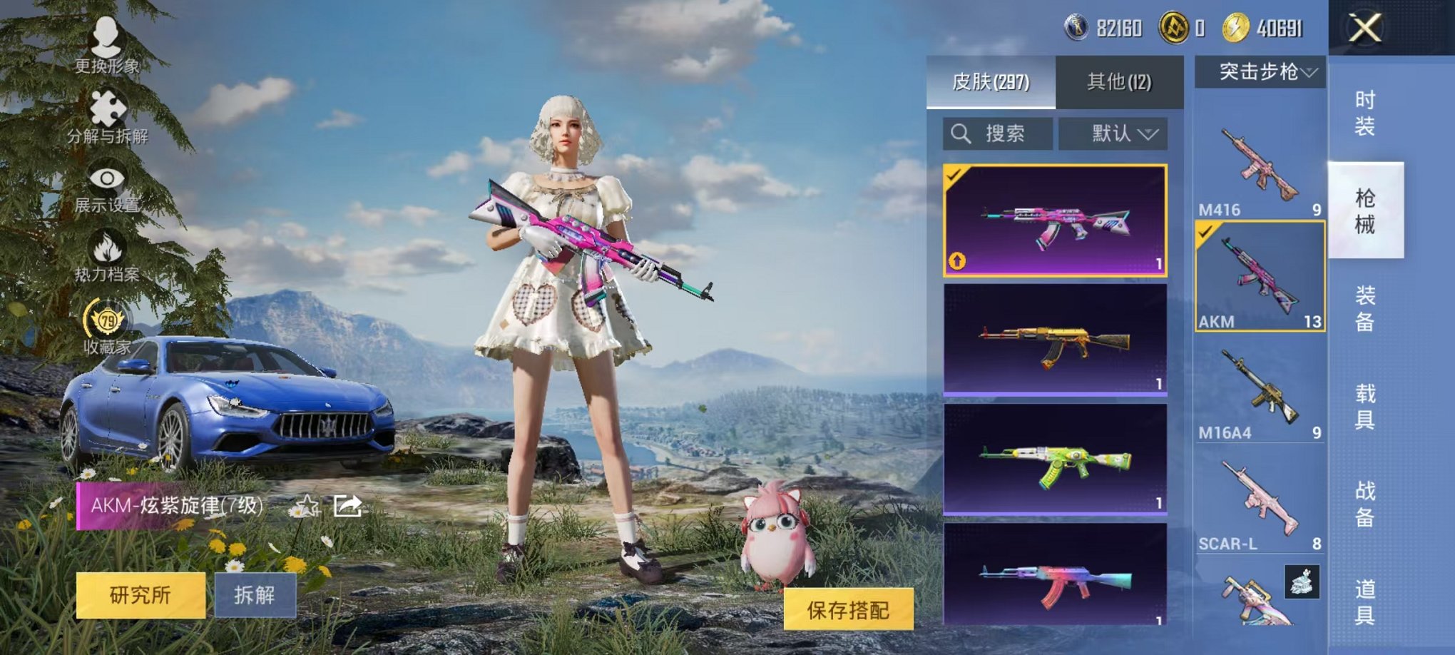 652-【16粉装10特效枪7载具】 安卓V区-112049热力值-269套装-297枪皮 【8载具】 路特斯EV黄色 玛莎拉蒂蓝色 阿斯顿马丁S红色 特斯拉R水滴蓝 特斯拉3银色 空客H135-蔚蓝之翼 特斯拉X白色 双刃魅影红色【16粉装】 缤纷油彩(猪脸妹) 宝贝奶油派 洛天依 彩虹甜喵 极致幻想 香水柠檬 绮梦青鸾 彩虹鹿灵 繁龙极客 恐龙拽拽 辉云木星 薄荷物语 金风玉露 火曜朱雀 金曜白虎 迷蝶贵族【10特效枪】 M416-五爪金龙(7级) M416-心之恋语(7级) AKM-炫紫旋