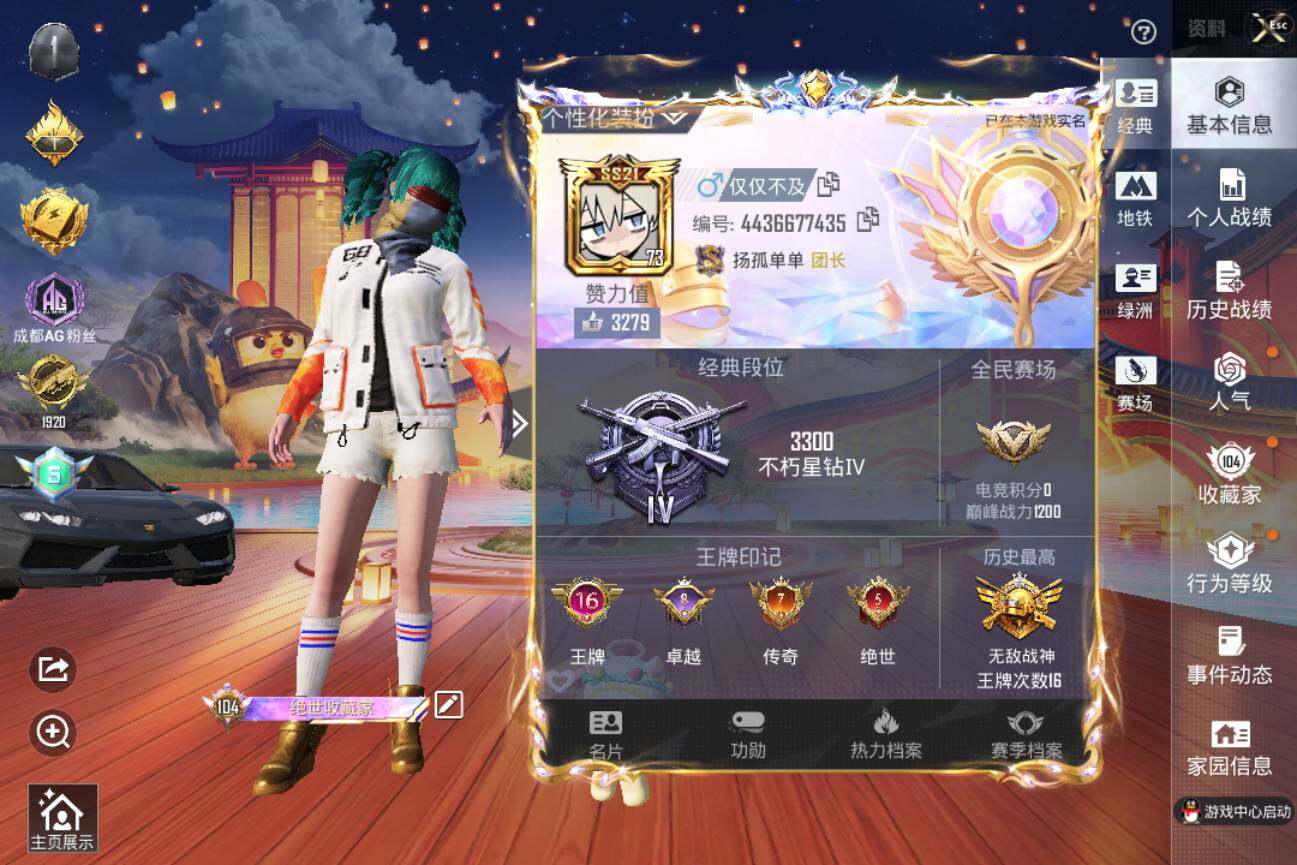 【A7297】苹果 【极品神装号/战神框/5套绝世印记/16王牌印记/ 沙丘之主-图卡盟(五级)/防御上衣/M416-星际漫游/M416-至情至圣(一级)/M416-超新星(八级)/粉装-怪诞乔克/粉装-雪国幻梦/粉装-梦幻火箭/套装-浪漫天命/套装-赤蝎幽灵/套装-都市猎人/套装-冥河战士/套装-派对舞王/套装-深海小丑鱼/兰博基尼Estoque(银翼灰)/百万伏特背包/萌熊伴侣背包/1神装-45粉装-44特效枪-5载具-21粉色飞行器】手Q---195804热力值-16王牌印记-338套装-