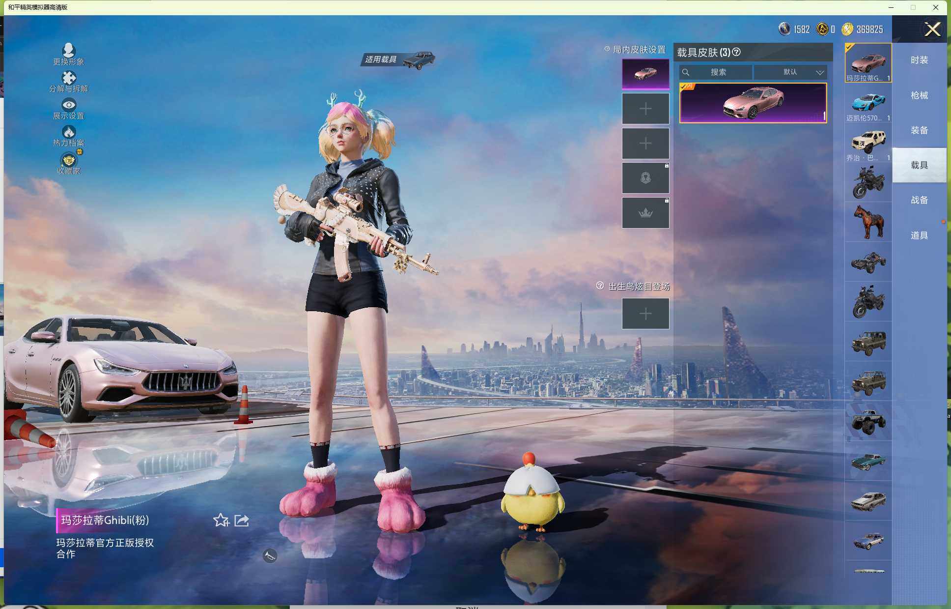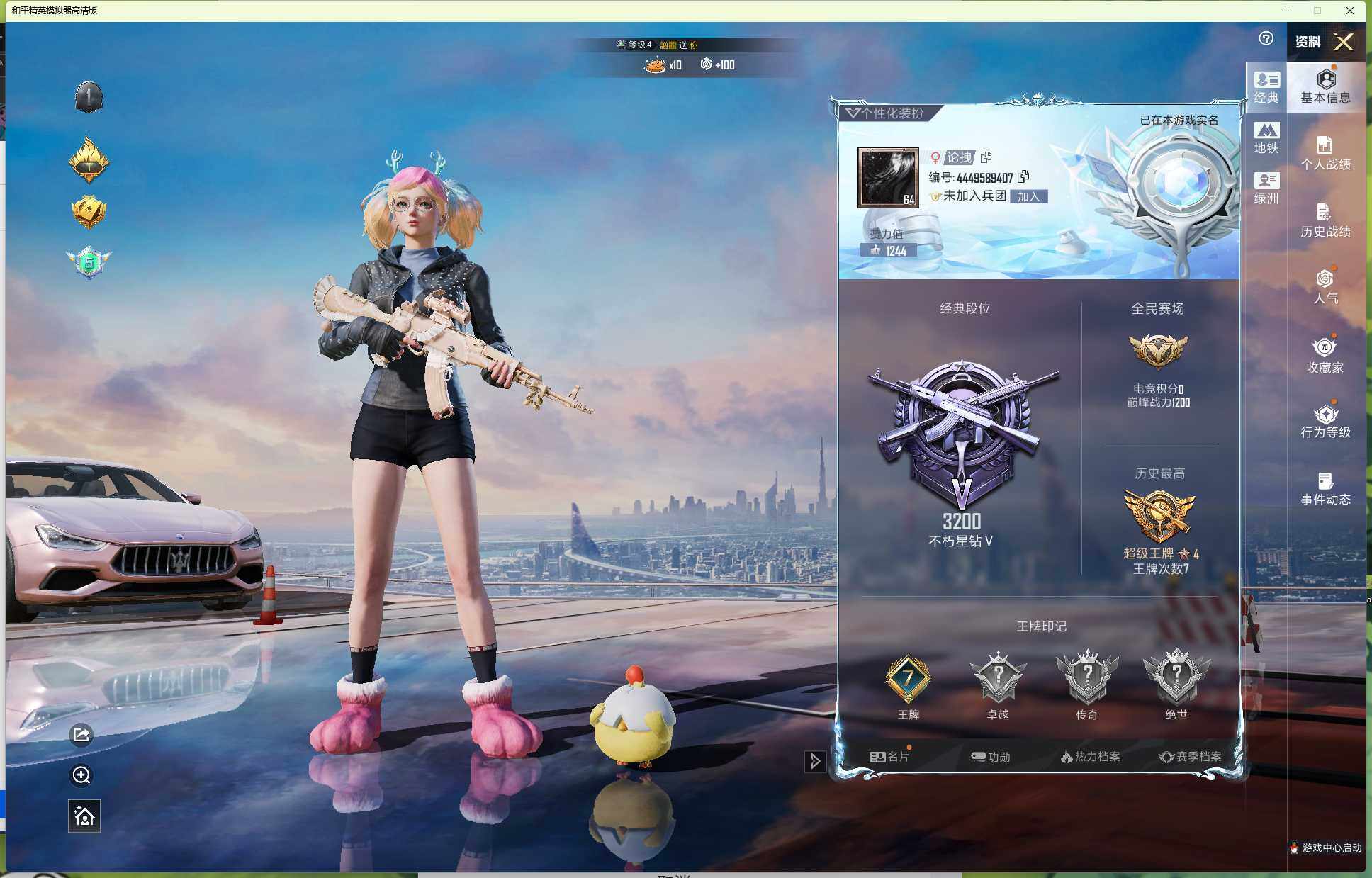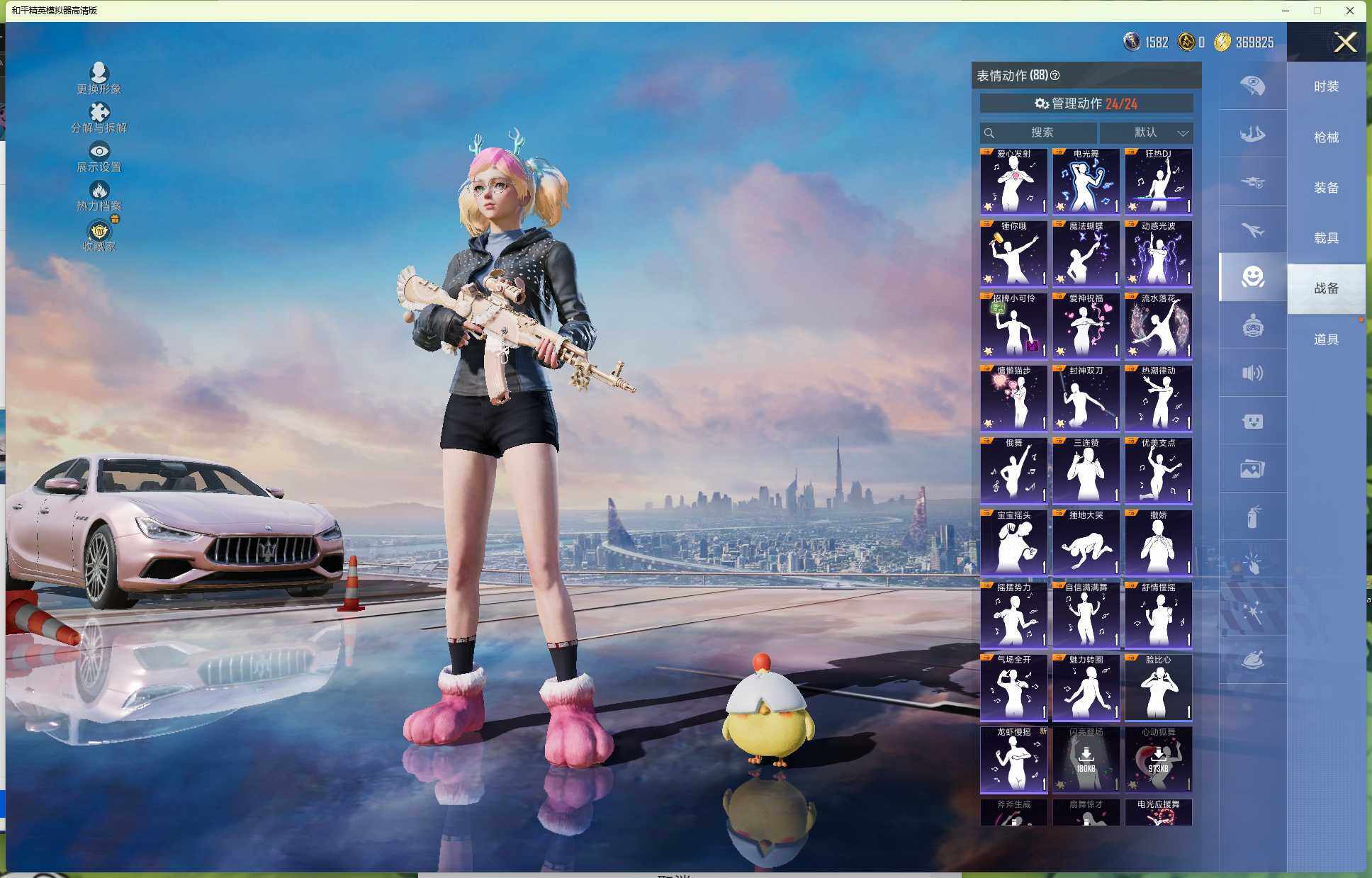 16粉装-5特效枪-3载具-4粉色飞行器-77695热力值-7王牌印记-191套装-227枪皮