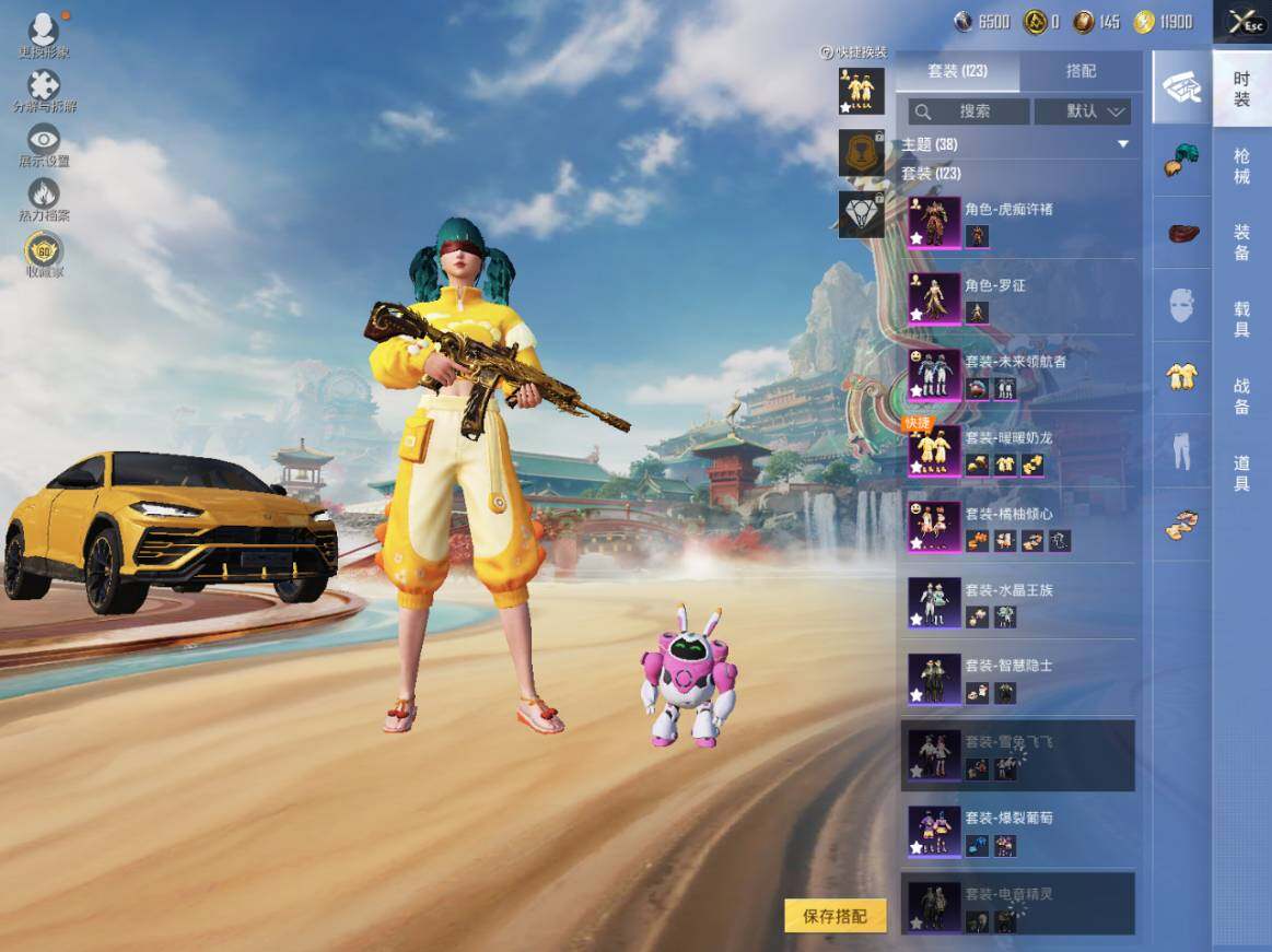 【粉色套装】:粉装-橘柚倾心,粉装-暖暖奶龙,粉装-未来领航者,角色-罗征,角色-虎痴许褚
