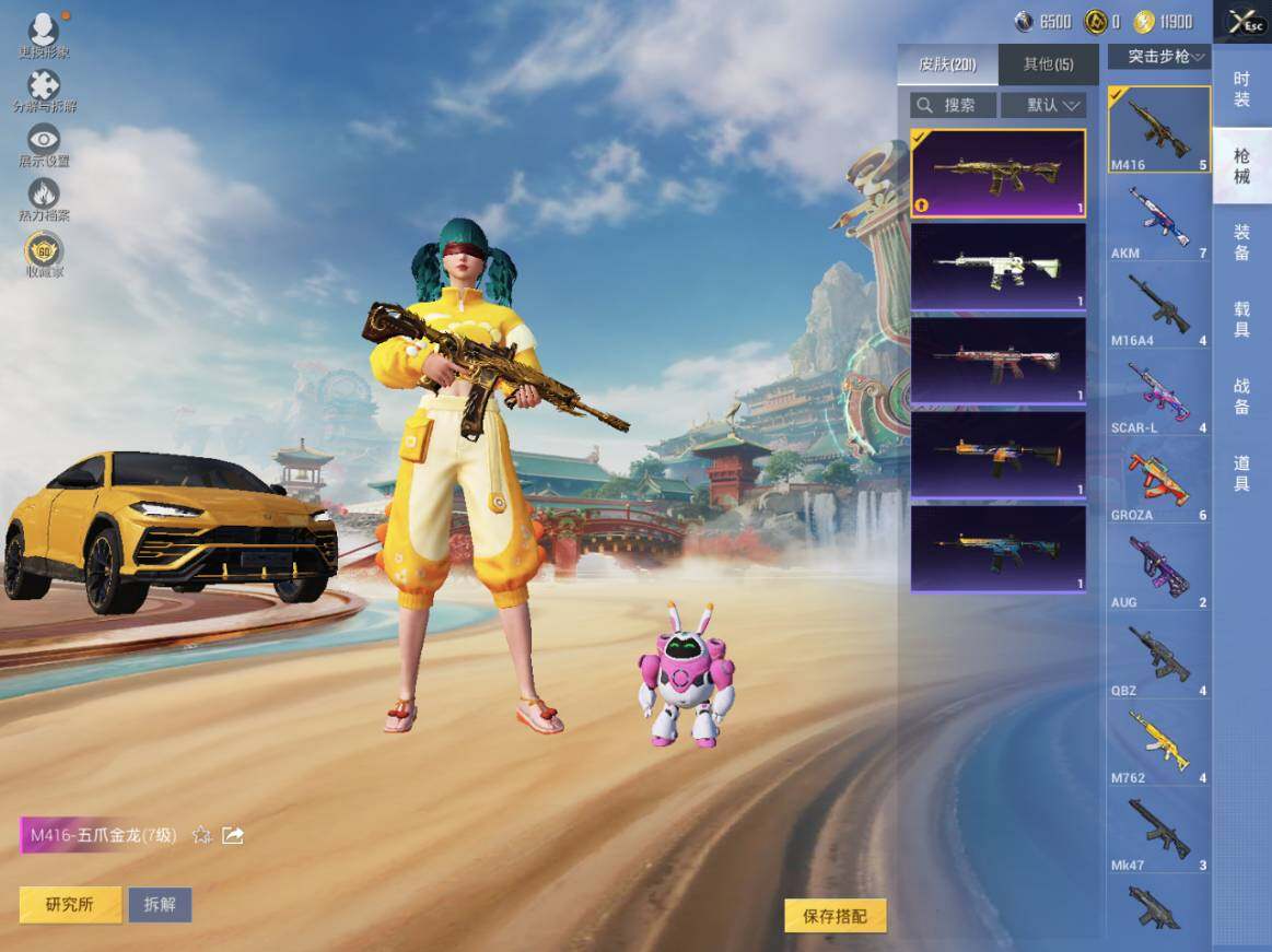 【粉色枪皮等级】:SCAR-L-机甲封神(七级),M416-五爪金龙(七级),Kar98K-巳巳如意(三级),SLR-暗夜玫瑰(三级),DP-28-豹影疾电(三级),MG3-酷泡奶龙(七级)