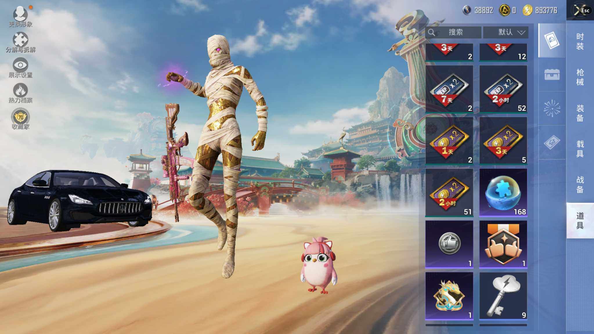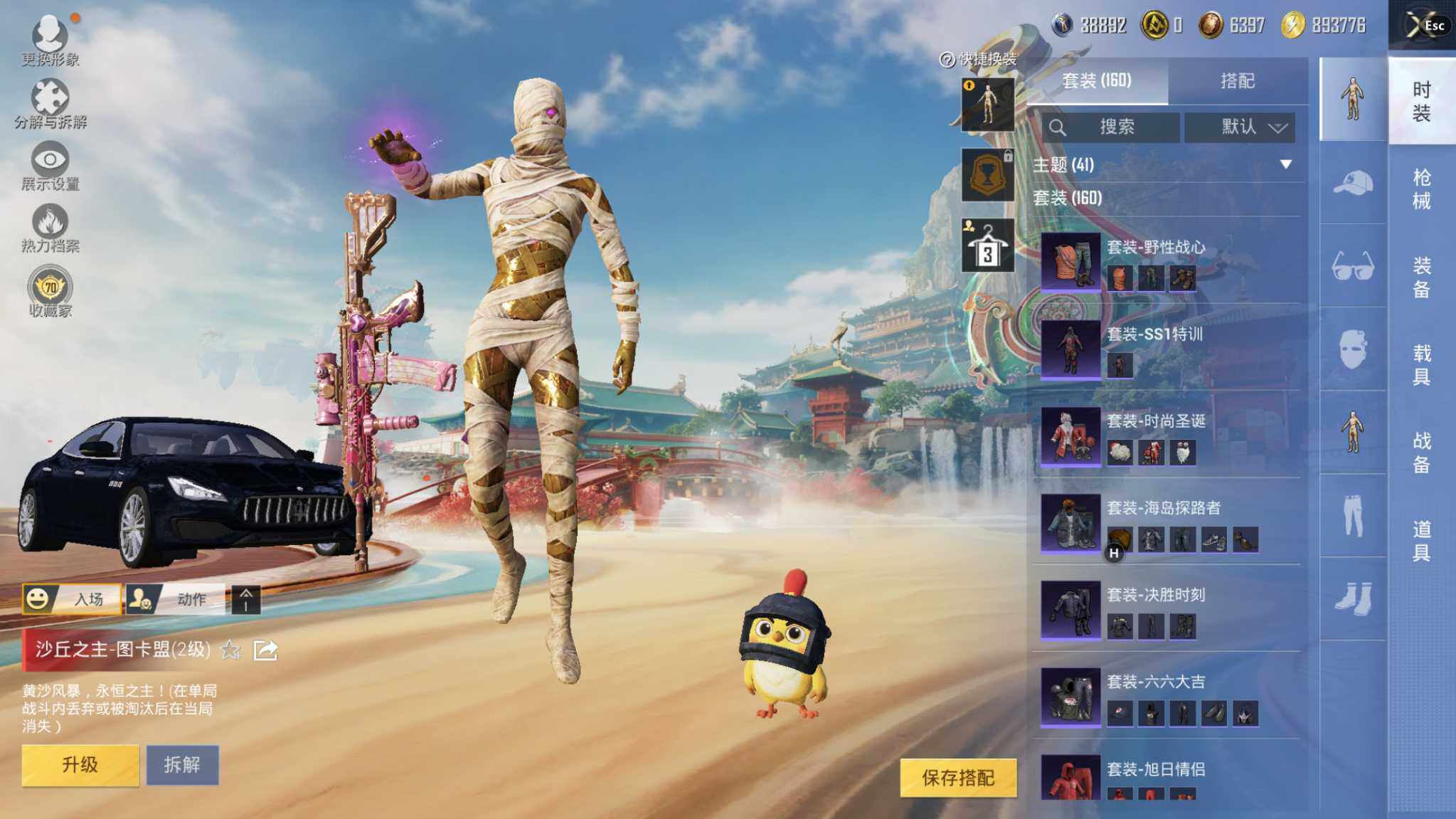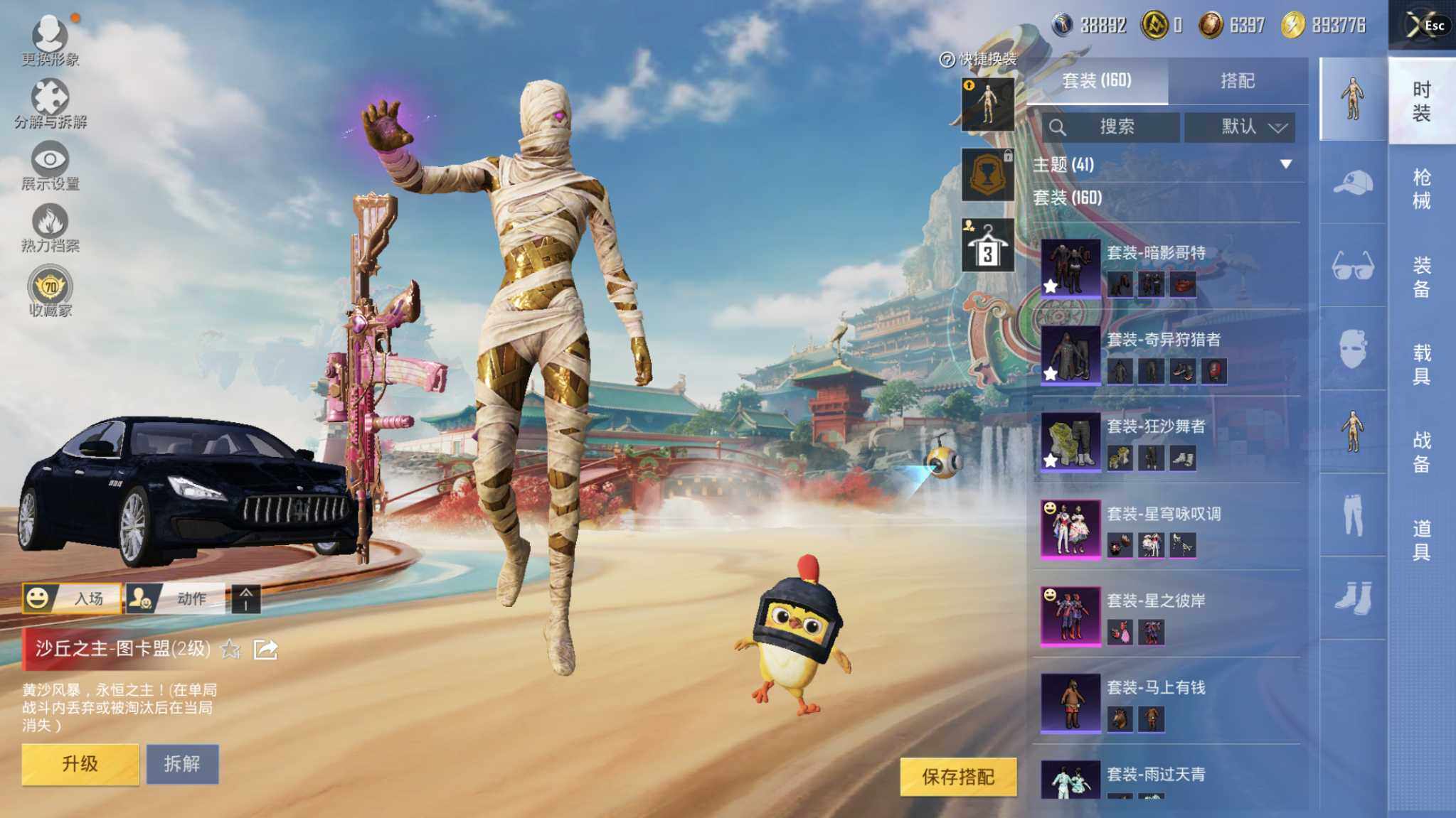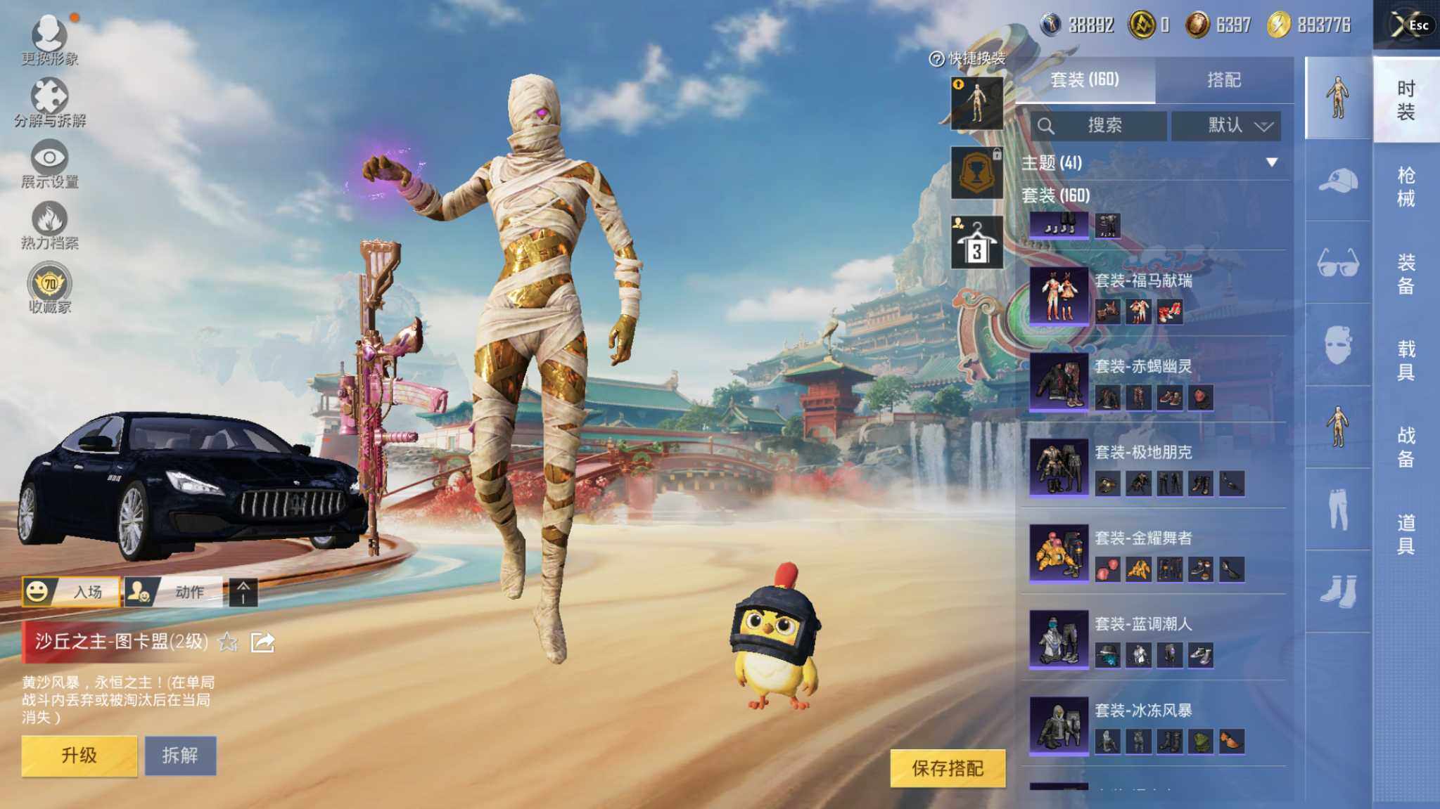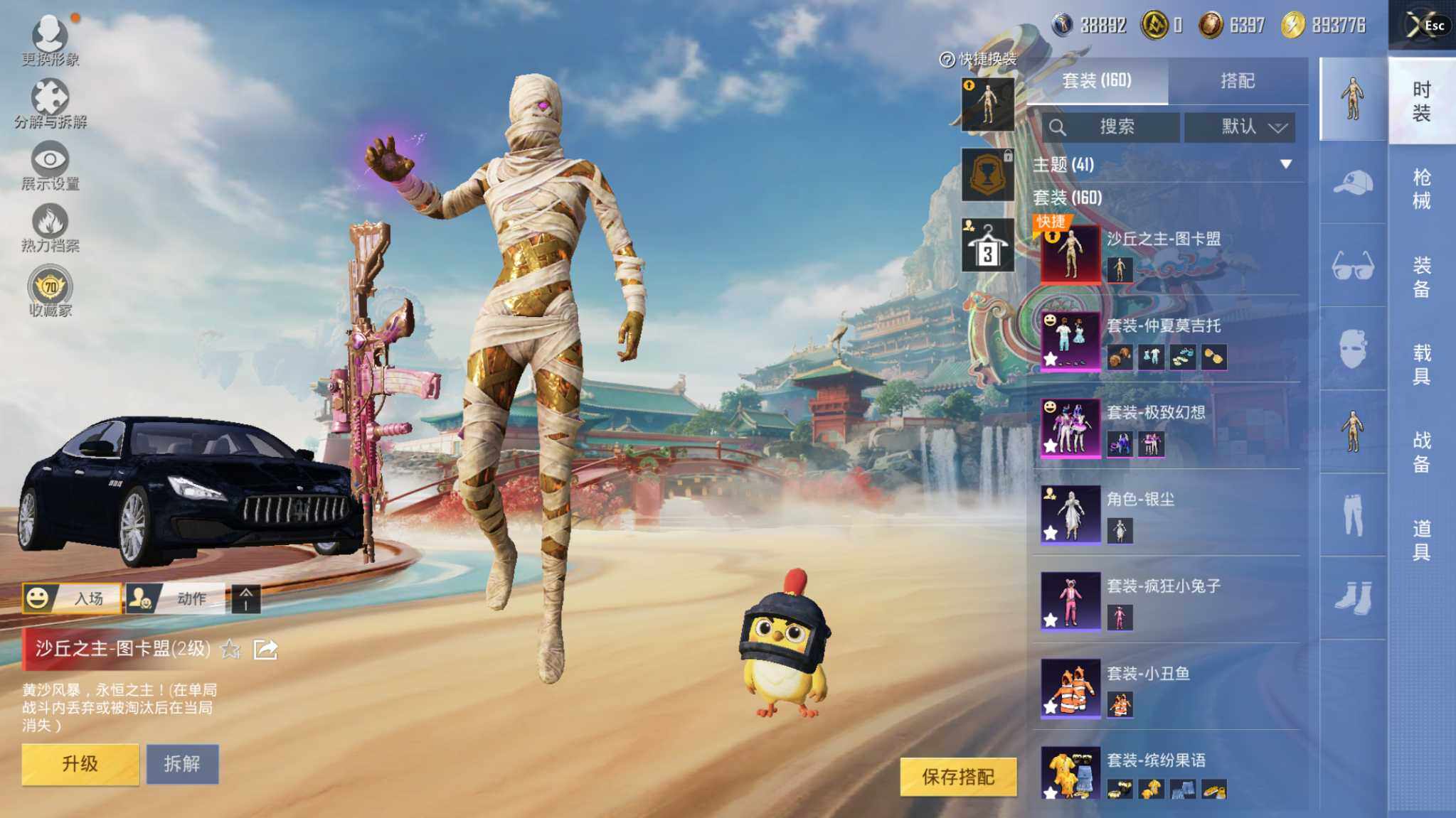 神装号/14王牌印记/沙丘之主-图卡盟(二级)/赤蝎幽灵/小丑鱼/暗影哥特/1神装-4粉装-9特效枪-2载具-3粉色飞行器