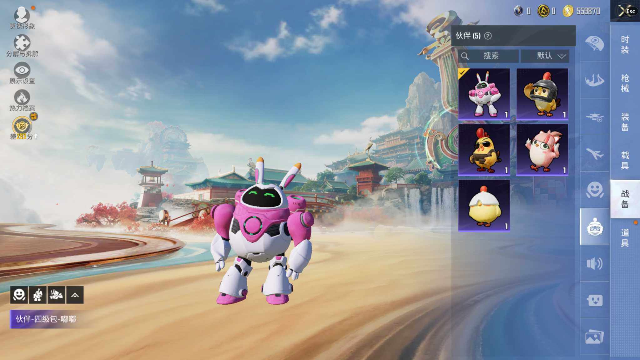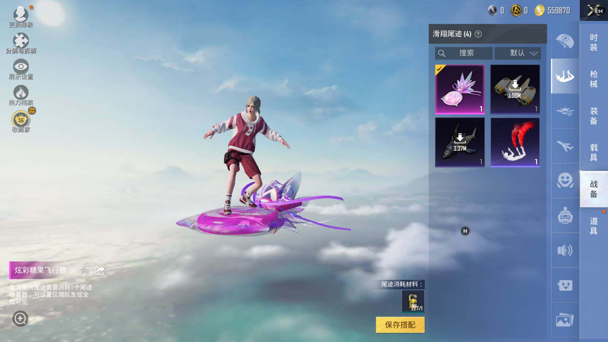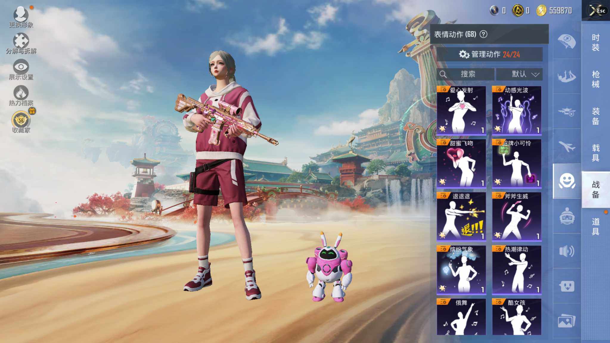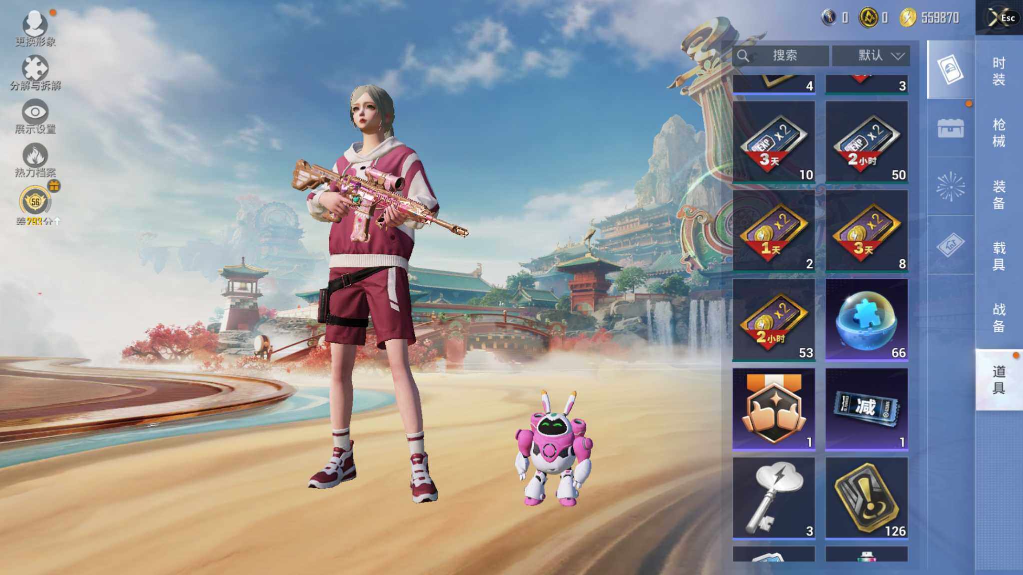 7粉装-4特效枪-0载具-1粉色飞行器-55496热力值-8王牌印记-136套装-167枪皮