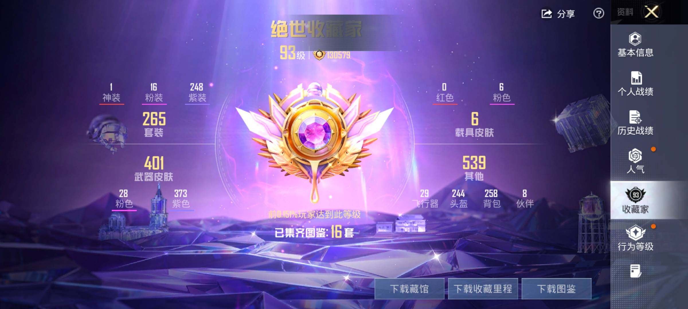 1红装6稀有6载具16粉装28特效枪18热门265套装426枪皮 20印记 历史传奇王牌18星