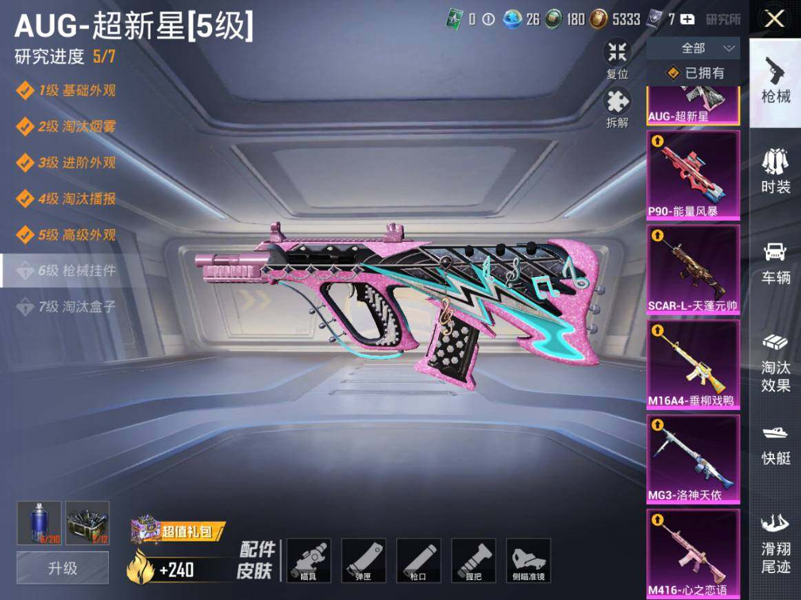 15粉装-12特效枪-4载具-2粉色飞行器-71989热力值-6王牌印记-126套装-195枪皮