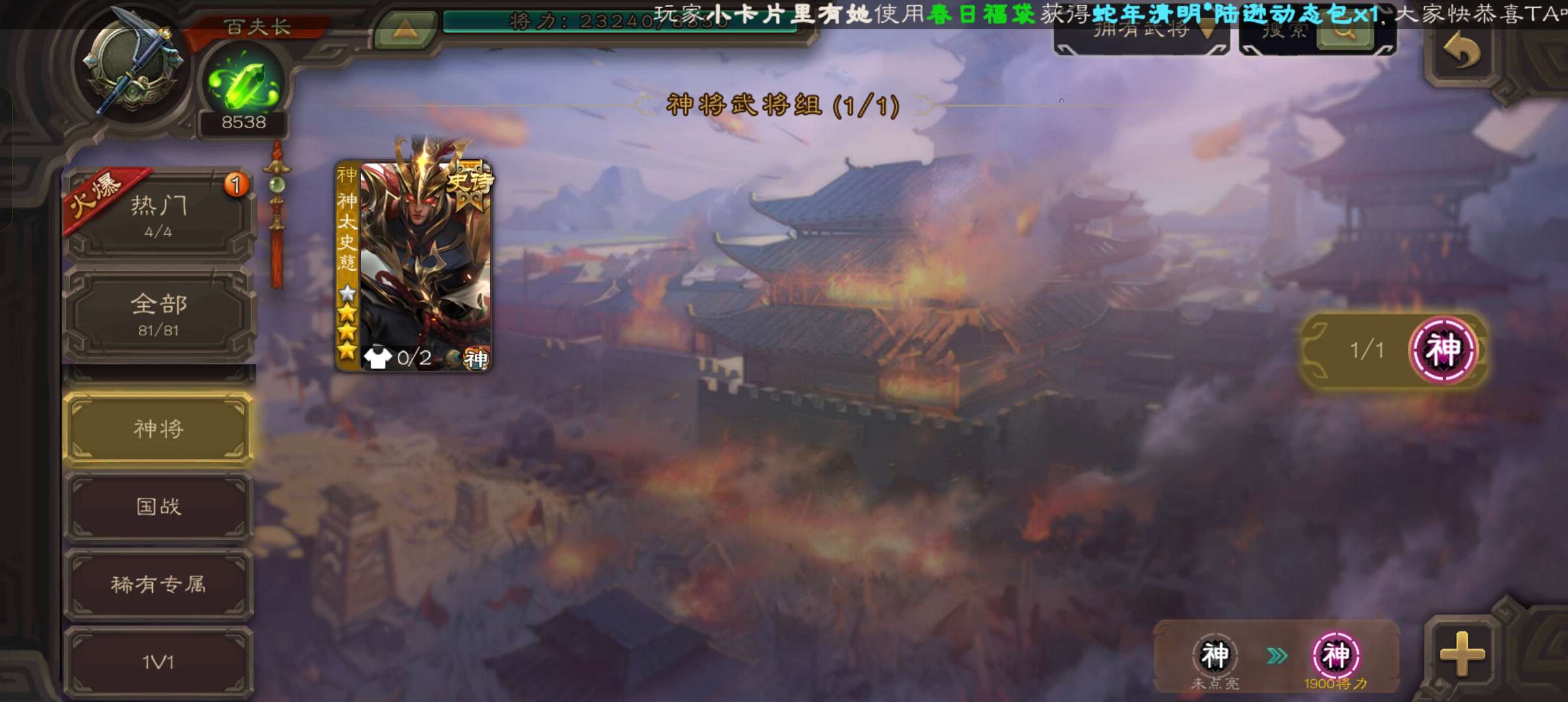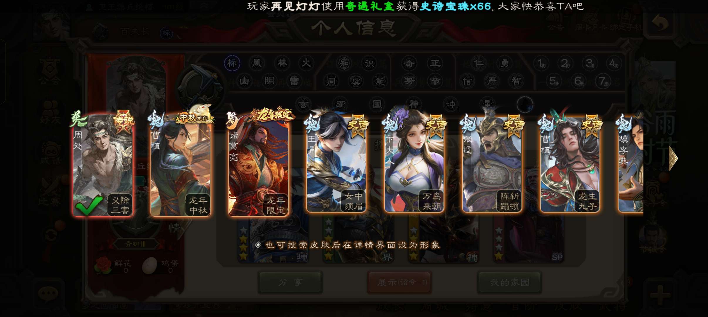 8史诗超级百夫长,11万羽毛8500魂9万豆,骥张辽大宝神太史慈花鬘谯周张星彩董允审配,225招募令