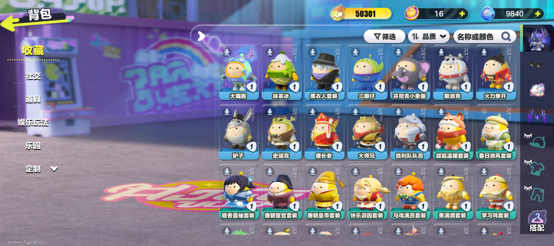 紫皮:抽象蛋小黄,柠檬汽水啵啵,街头一霸骐哥,波泡儿,石心船长苏勒,发美美,打菜侠妙妙,咸鱼蛋,小福袋添运,面包狗松松,北极熊安安,小浮冰,失心熊,仓鼠米仔,仔仔熊,淘气丸子,饶舌诗人,古风小生汪伦,沉梦女孩朵朵,云宝,冷面千金竹月,海盐布丁嘟嘟,大娃,奶龙,幽灵猫妮莎,狼执事柯尔特,暹罗猫,古董商