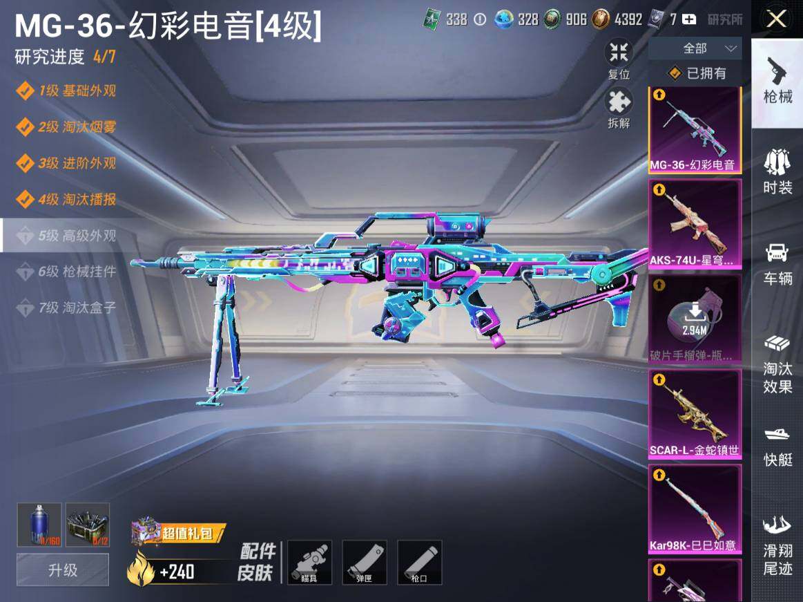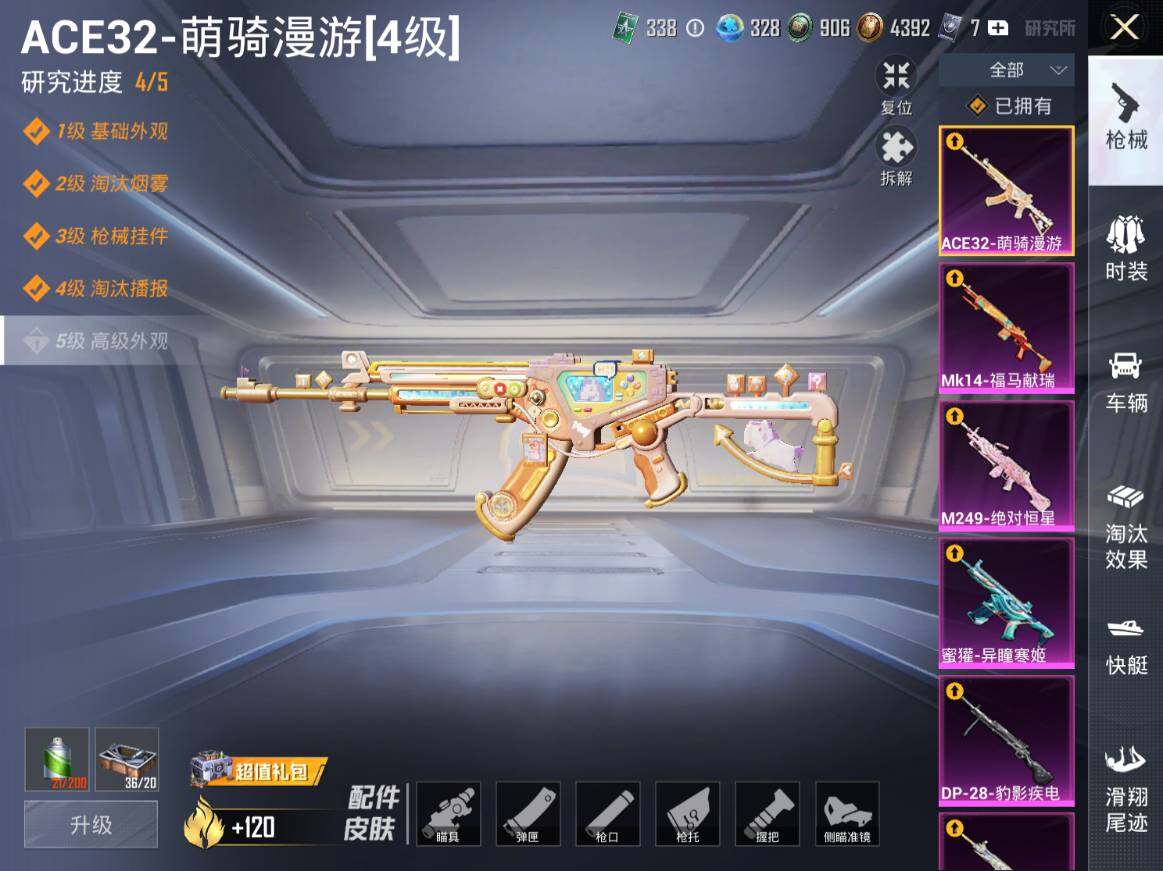 1神装-23粉装-20特效枪-5载具-11粉色飞行器-172562热力值-26王牌印记-380套装-456枪皮