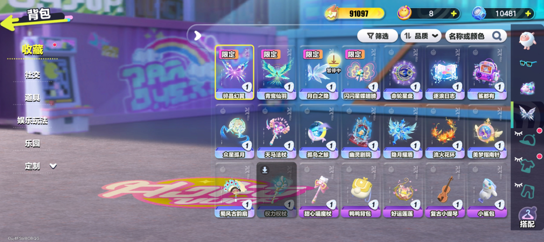 紫皮:蜜蜂 DongDong, DongDong, 风铃星语刹那,幽猎塞莉诺,大亨波利,猴吼吼,京剧少年封闲,莓莓甜心兔,神兽嘲风,御狸奴,打菜侠妙妙,企鹅心心,暹罗猫,小福袋添运,元气丸子,袋鼠嘟宝,魔灯闪闪,刺猬绷绷,天狗刑云