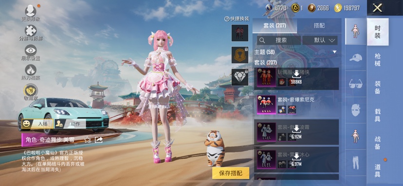 实名: 可修改 时装数: 698 载具数: 2 枪械数: 324 战备数: 21