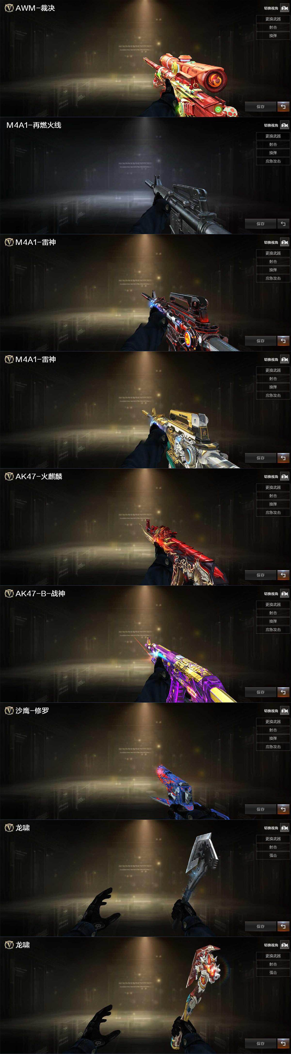 【皮肤】:AWM-裁决-凤灵皮肤,雷神-暗月,雷神-虎将,M4A1-再燃火线,