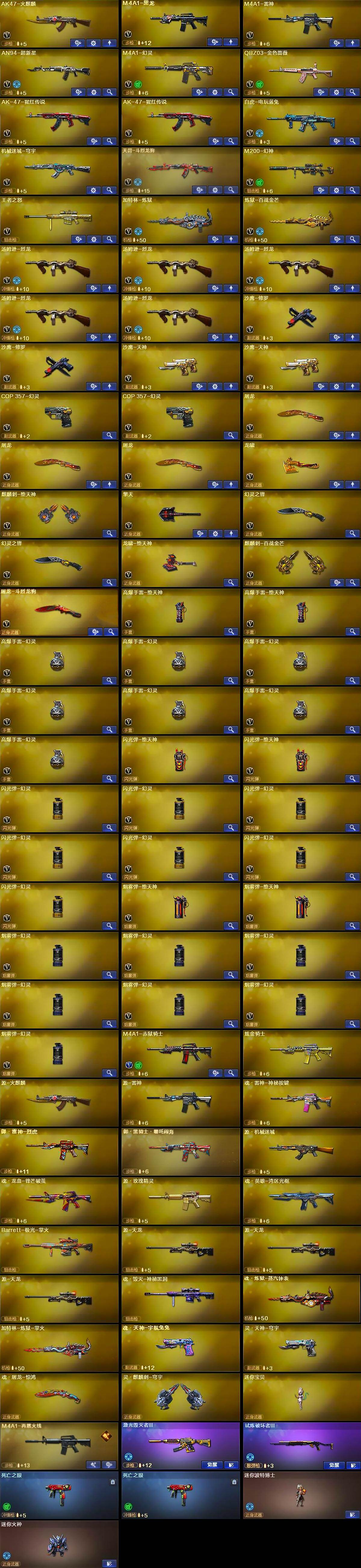 【热门武器】:QBZ03-金色蔷薇,M200-幻神,死亡之眼*2,白虎-电玩蓝兔,汤姆逊-烈龙*5,加特林-炼狱,COP 357-幻灵*2,沙鹰-修罗*2