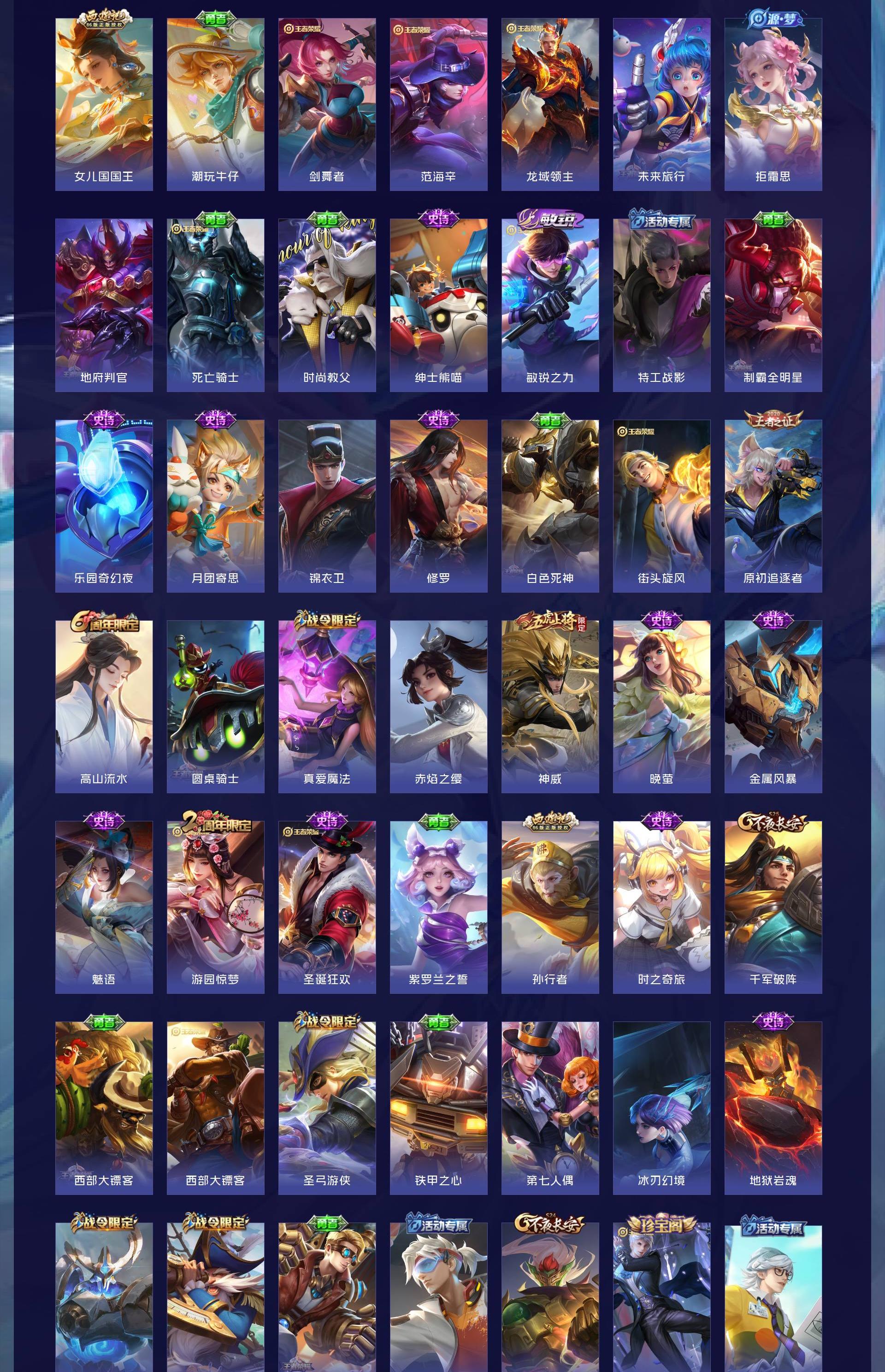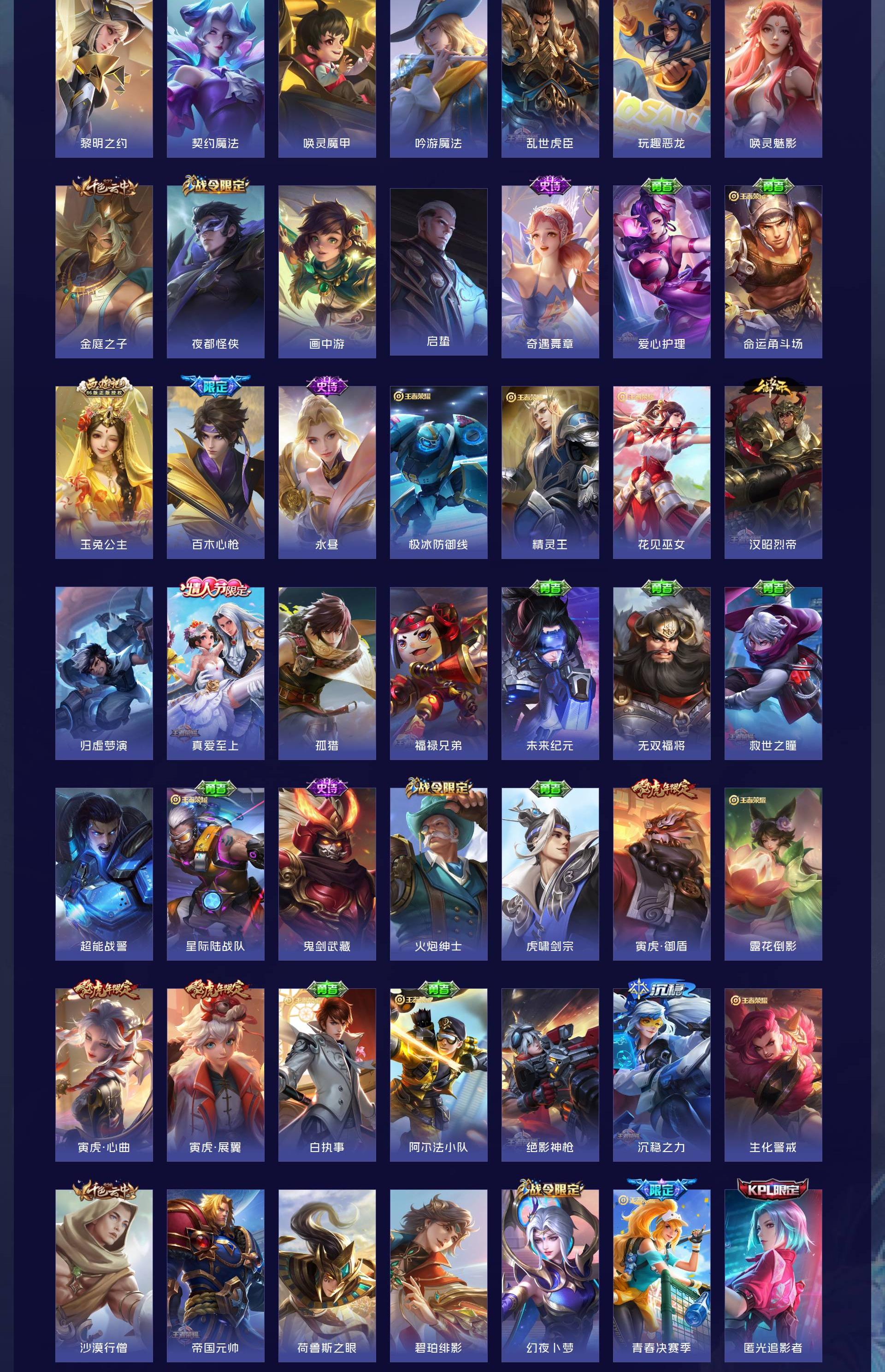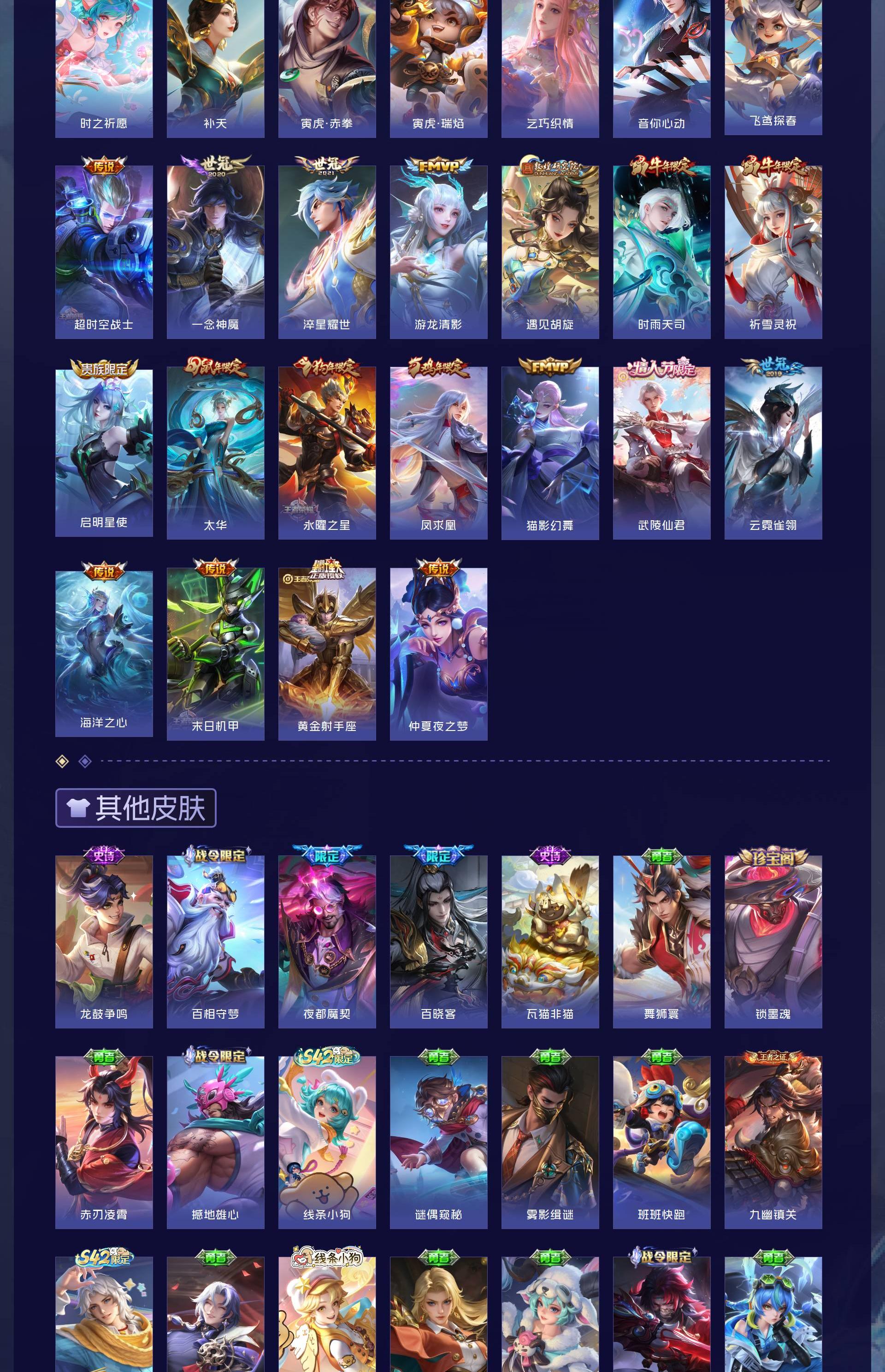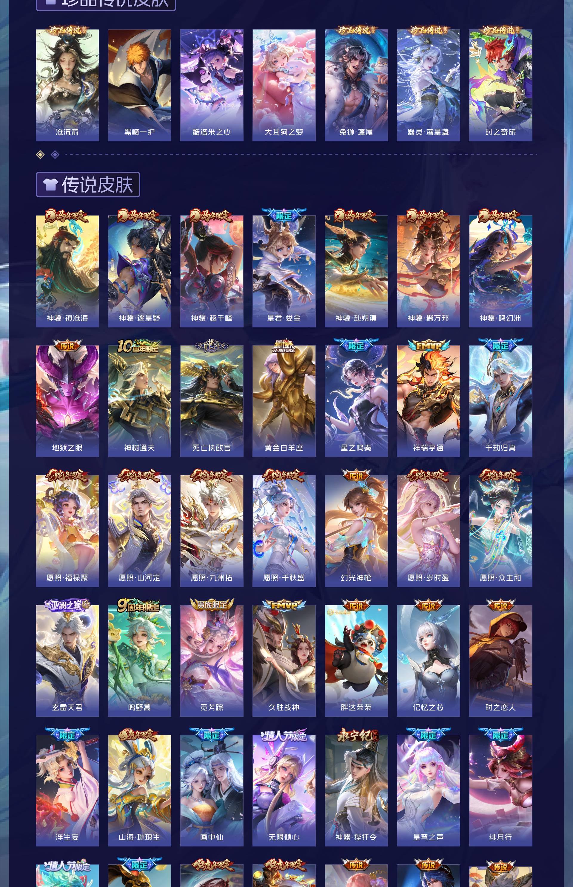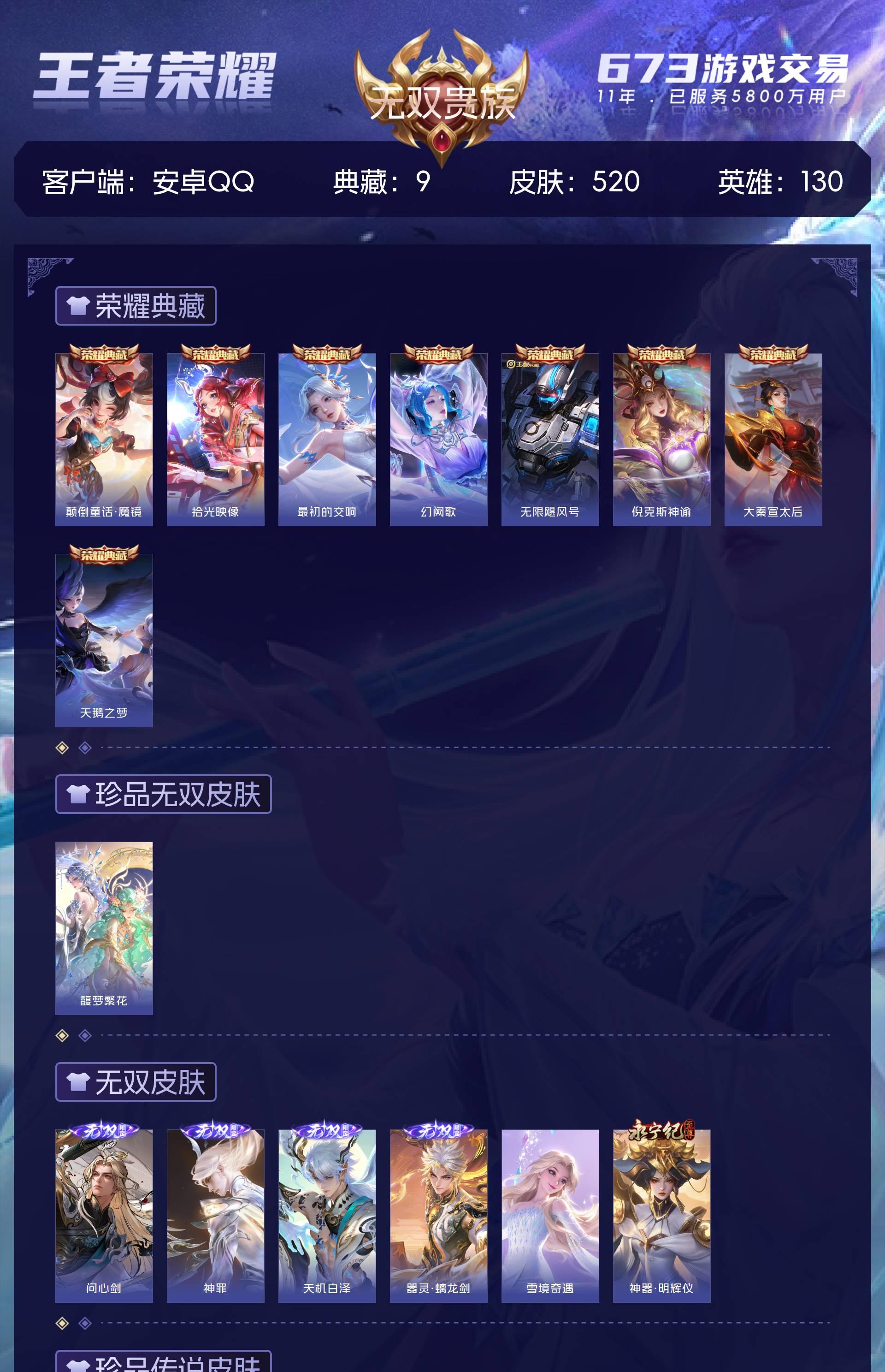 无双贵族 皮肤520 英雄130 最强王者 荣耀典藏9 珍品无双1 无双皮肤6 珍品传说7 星传说10 传说60