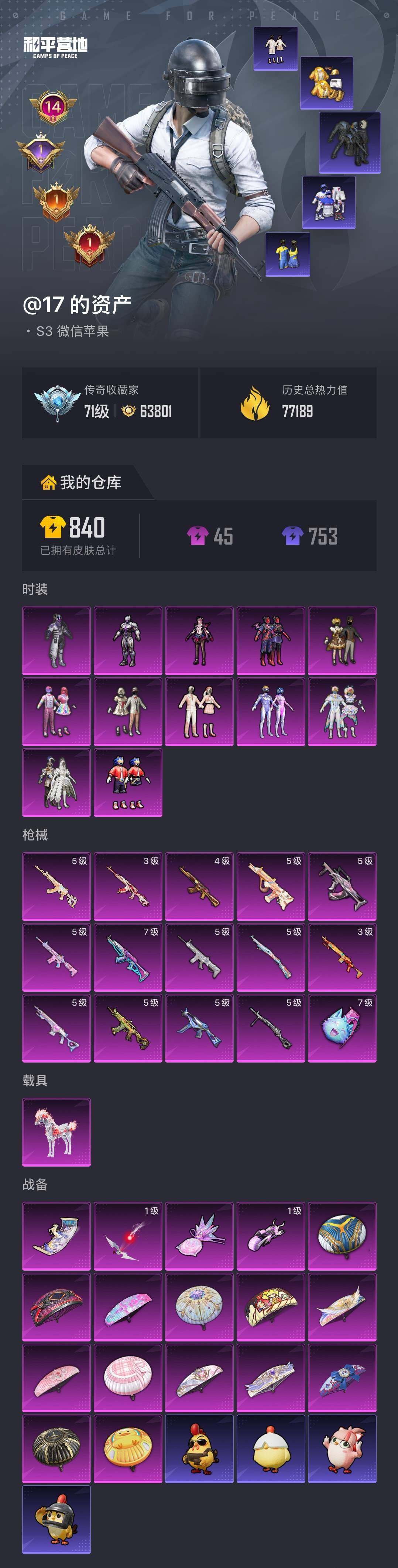 【AZH3763】苹果 微信【都市巧克力三姐妹梦幻火箭金靴子 满级梦之光华AKM 粉熊背包 1载具】12粉装-15特效枪-1载具-4粉色飞行器-77189热力值-14王牌印记-151套装-246枪皮