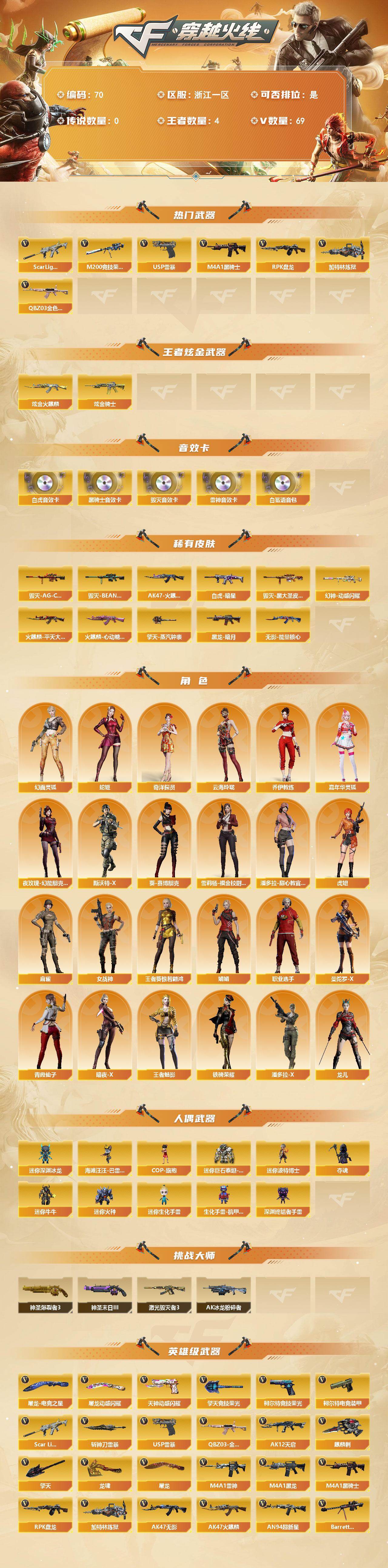 【特价出售·性价比账号·收慢无】浙江一区-73V-4王者武器数-2炫金武器数