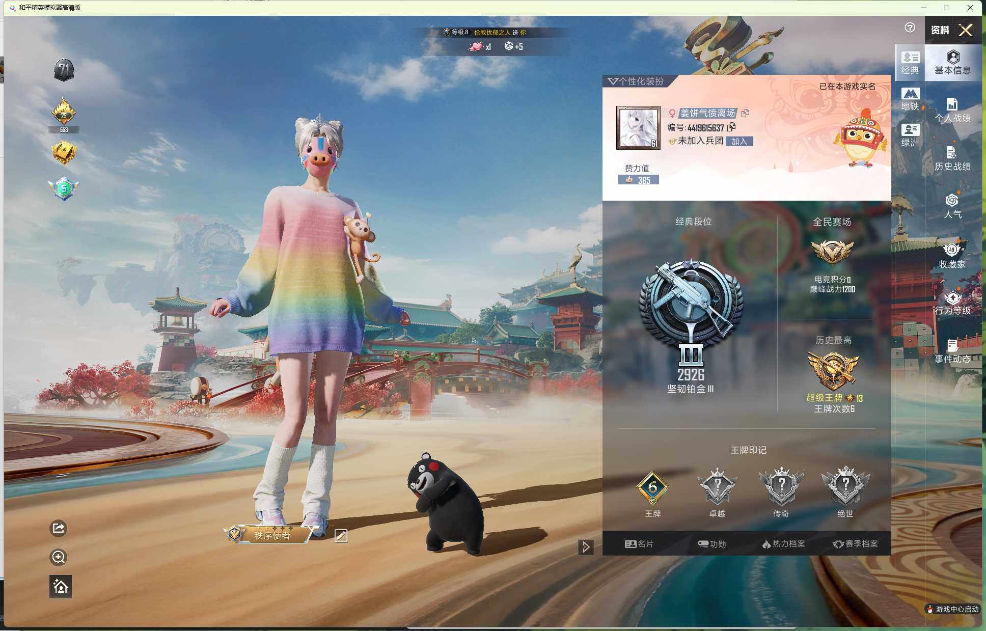 【A10924】安卓 【小号 粉装-缤纷油彩/角色-千金淑猫/Kar98K-巳巳如意(一级)】手Q-7粉装-3特效枪-0载具-2粉色飞行器-39681热力值-6王牌印记-94套装-126枪皮